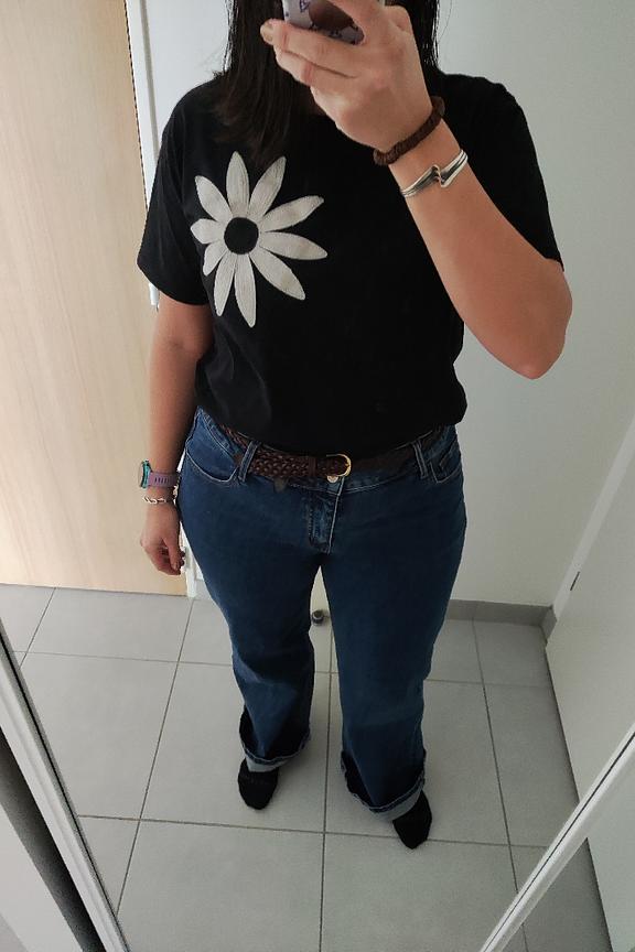 “T-shirt simple et original avec la fleur brodée, agréable à porter ☺️”