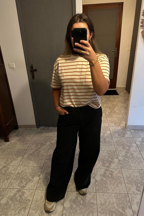 Associez ce t-shirt à un jean taille haute et des baskets pour un look estival décontracté. • Tee-shirt à rayures • Coupe ample • Manches courtes • Col rond • Motif rayé