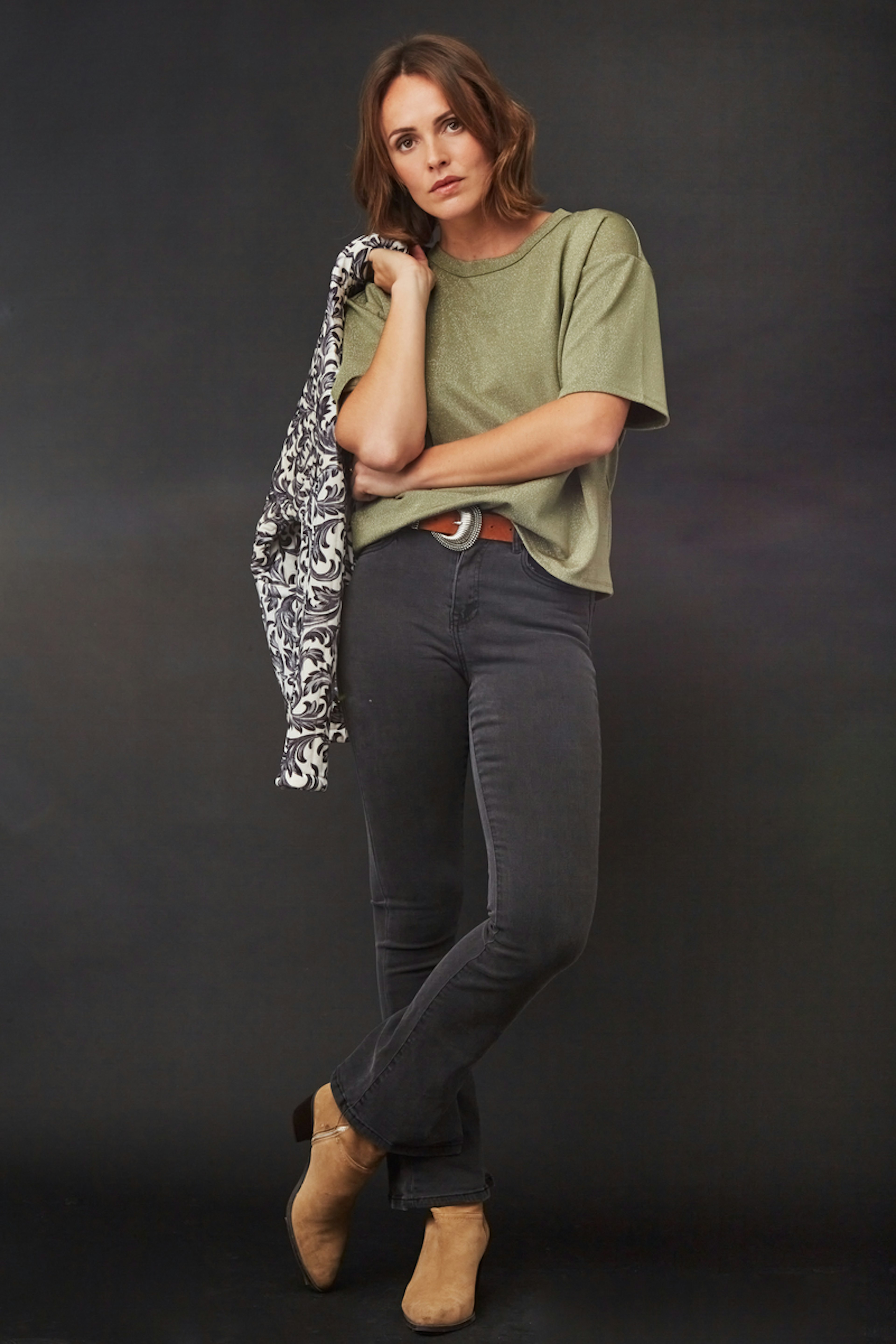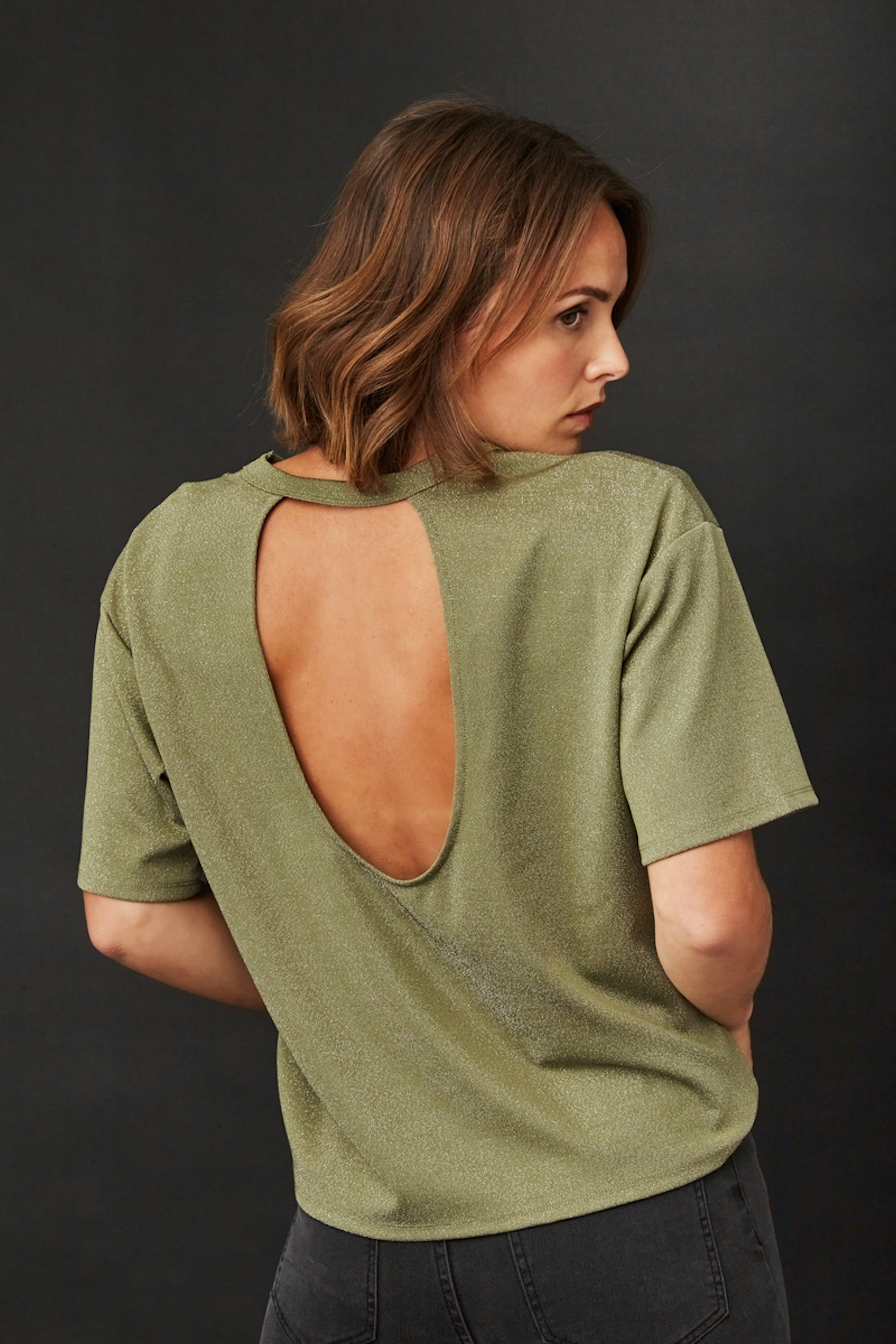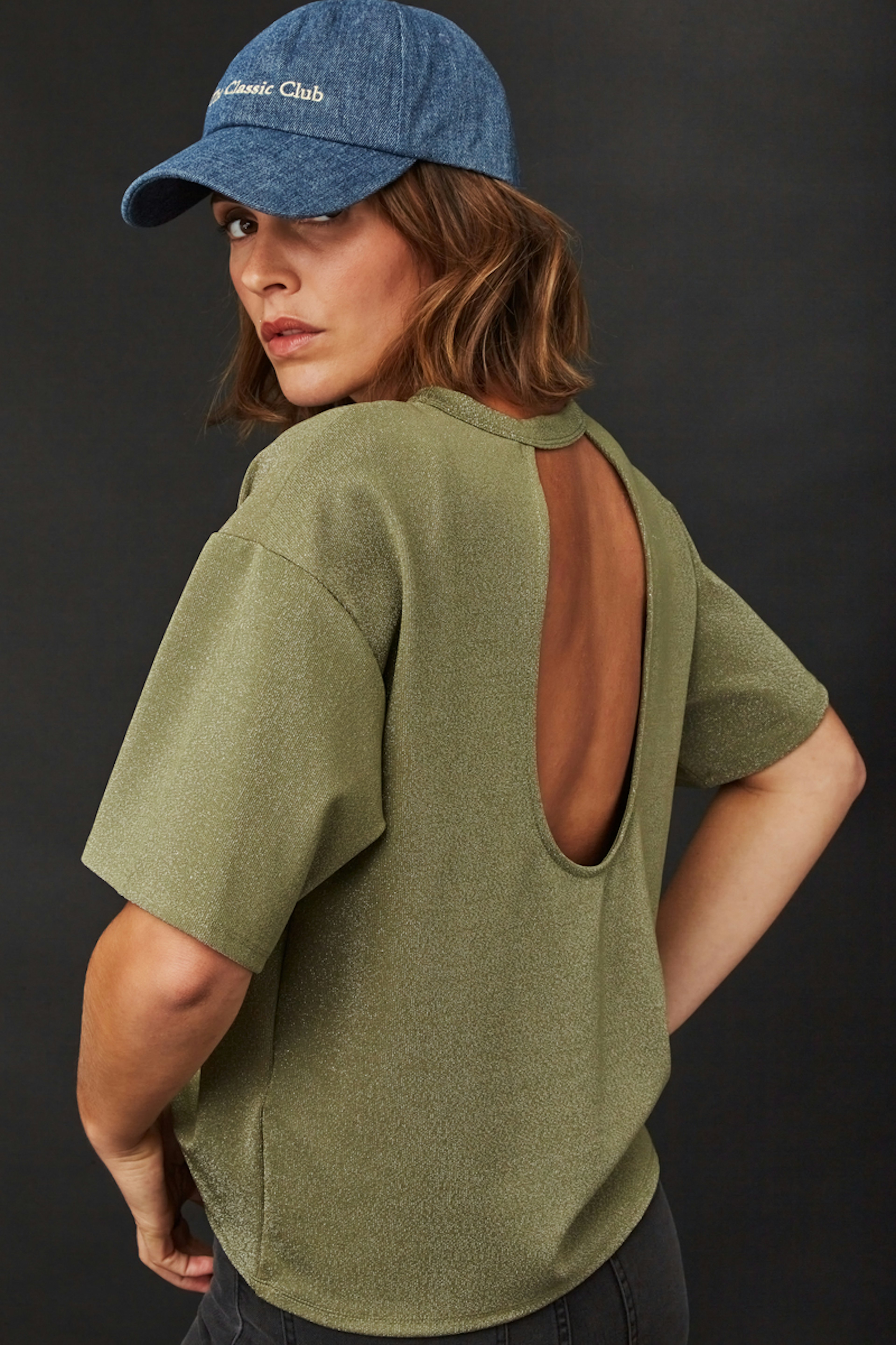 - Tee-shirt ouverture dos - Tissu brillant - Oversize