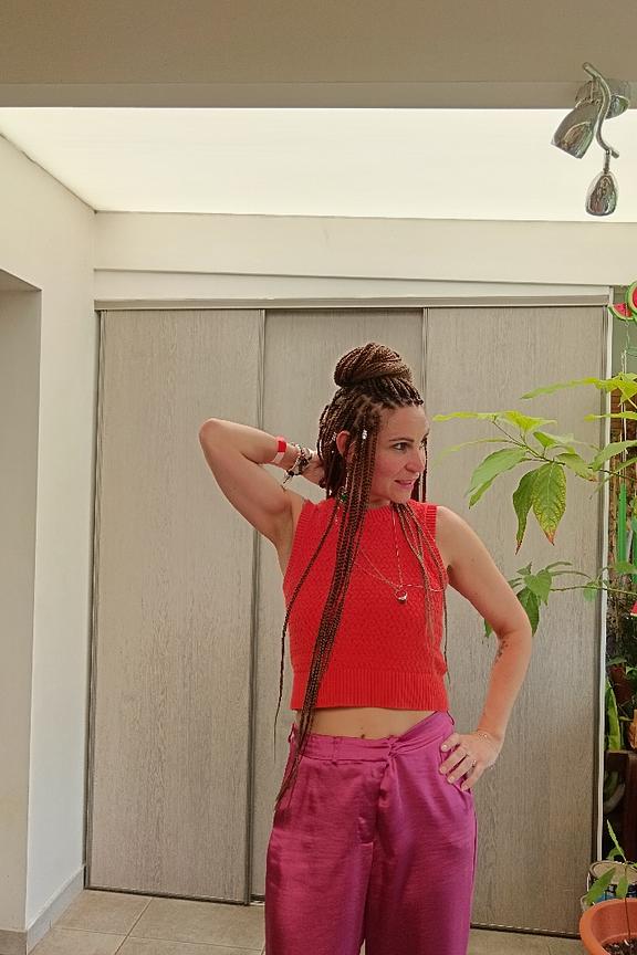โ2e fois que je le loue, j'adore sa couleur et sa matiรจre pour l'รฉtรฉ. Je prends tjs une taille au-dessus (le 40/L pour mon 1m60 avec petit buste)โ