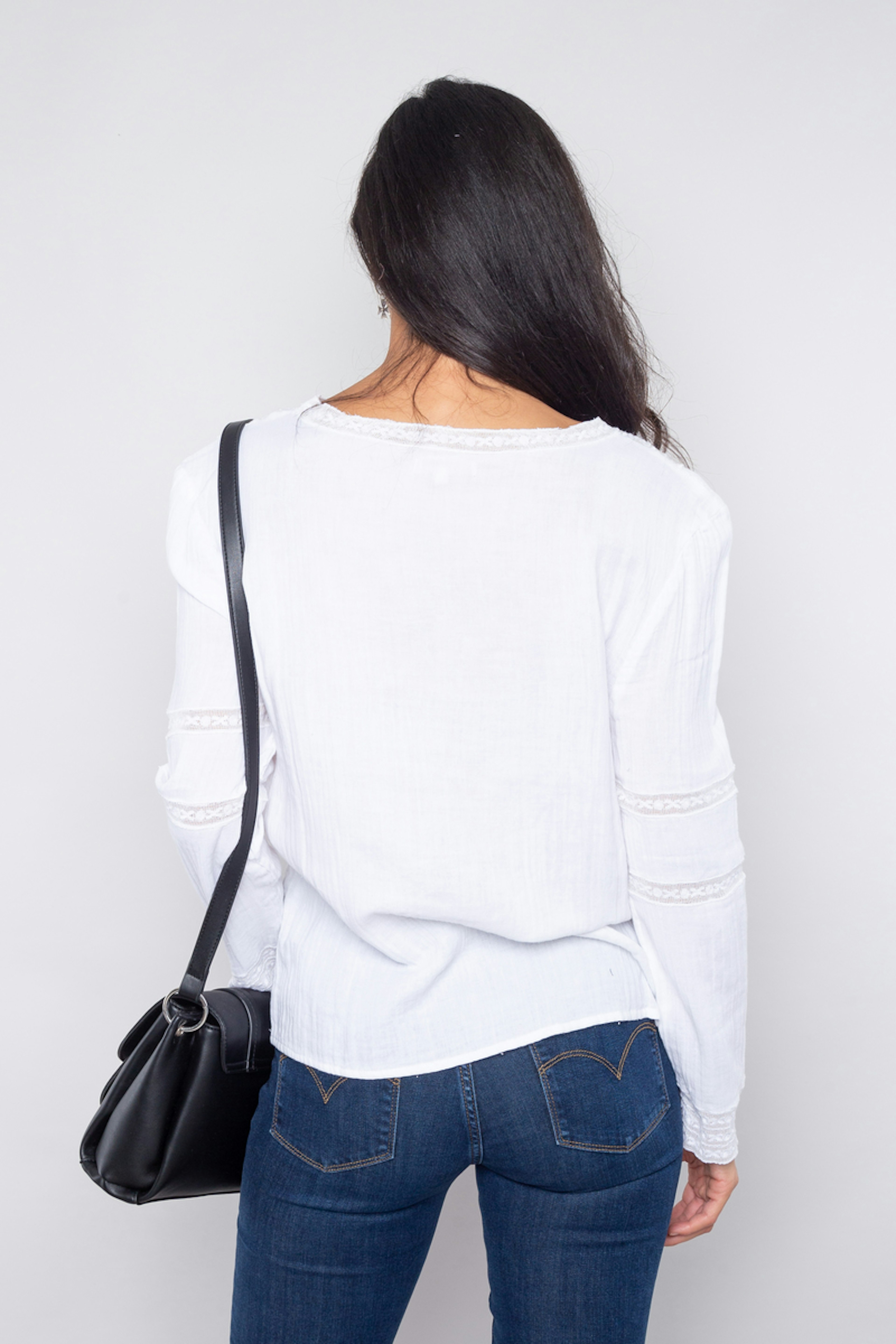 โข Top blanc en coton โข Incrustation de dรฉlicates dentelles