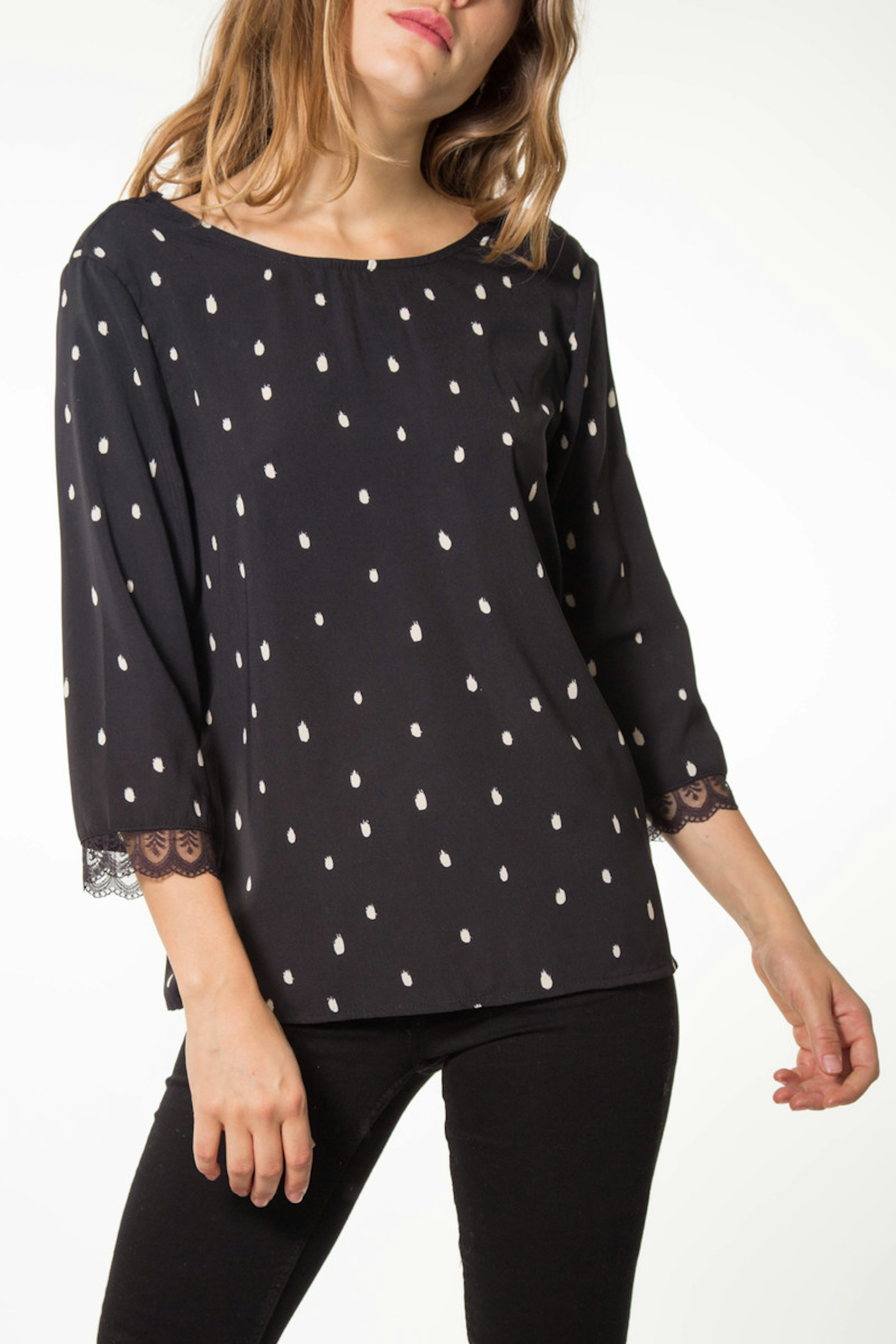 On adore ce top qui nous fait dรฉcouvrir la version moderne de l'imprimรฉ pois. Le dรฉtail en dentelle le long de son encolure en V dans le dos est la parfaite touche finale ! On aime la porter avec la jupe Menat pour un look frais et automnal, ou avec un jean pour un style รฉlรฉgant sans prise de tรชte !