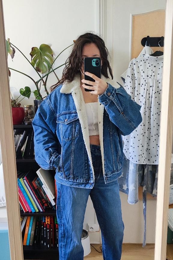 โข Veste en denim doublรฉ style sherpa oversize โข Poche plaquรฉe ร la poitrine โข Manches longues โข 2 poches latรฉrales โข Veste chaude