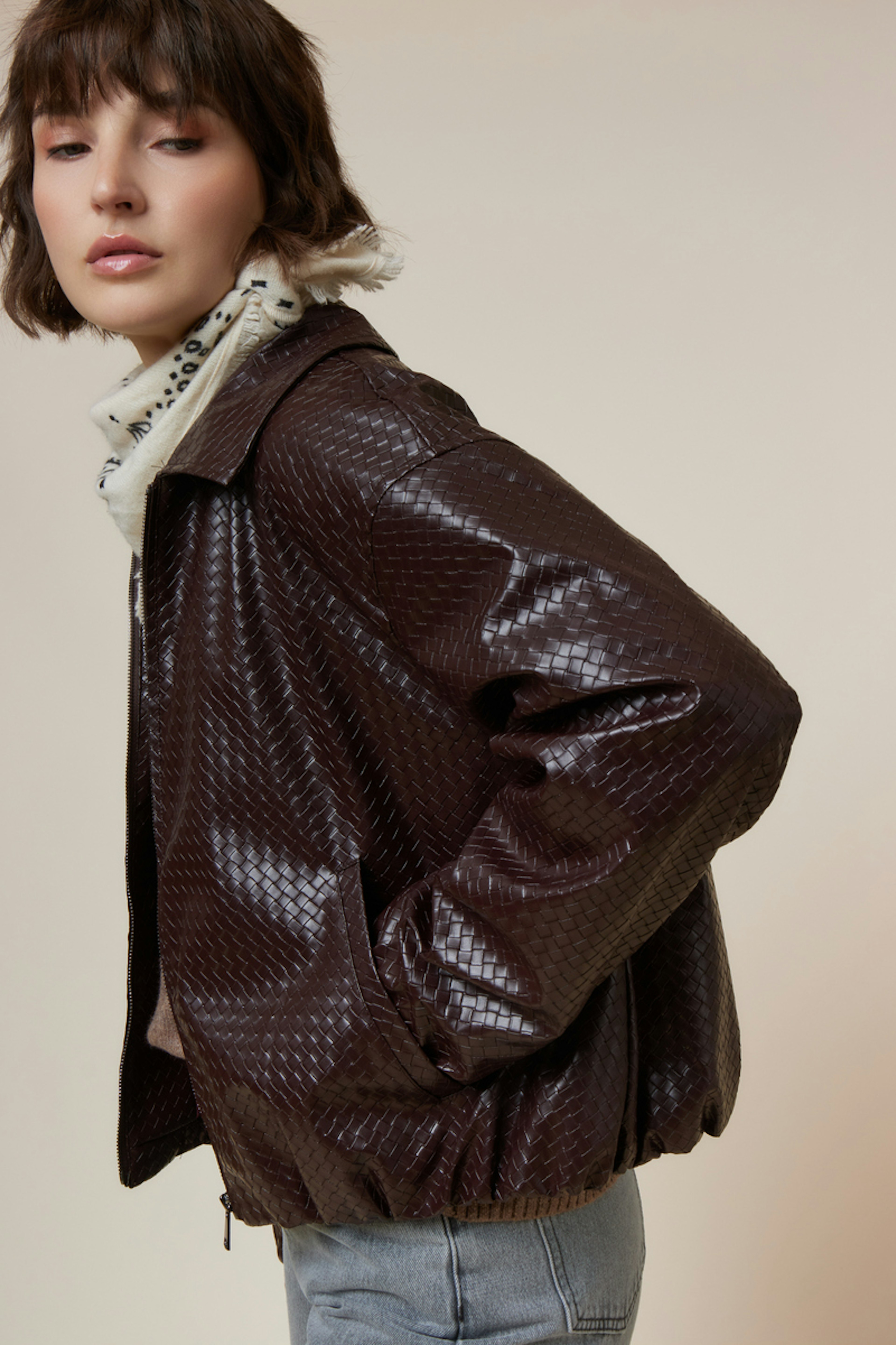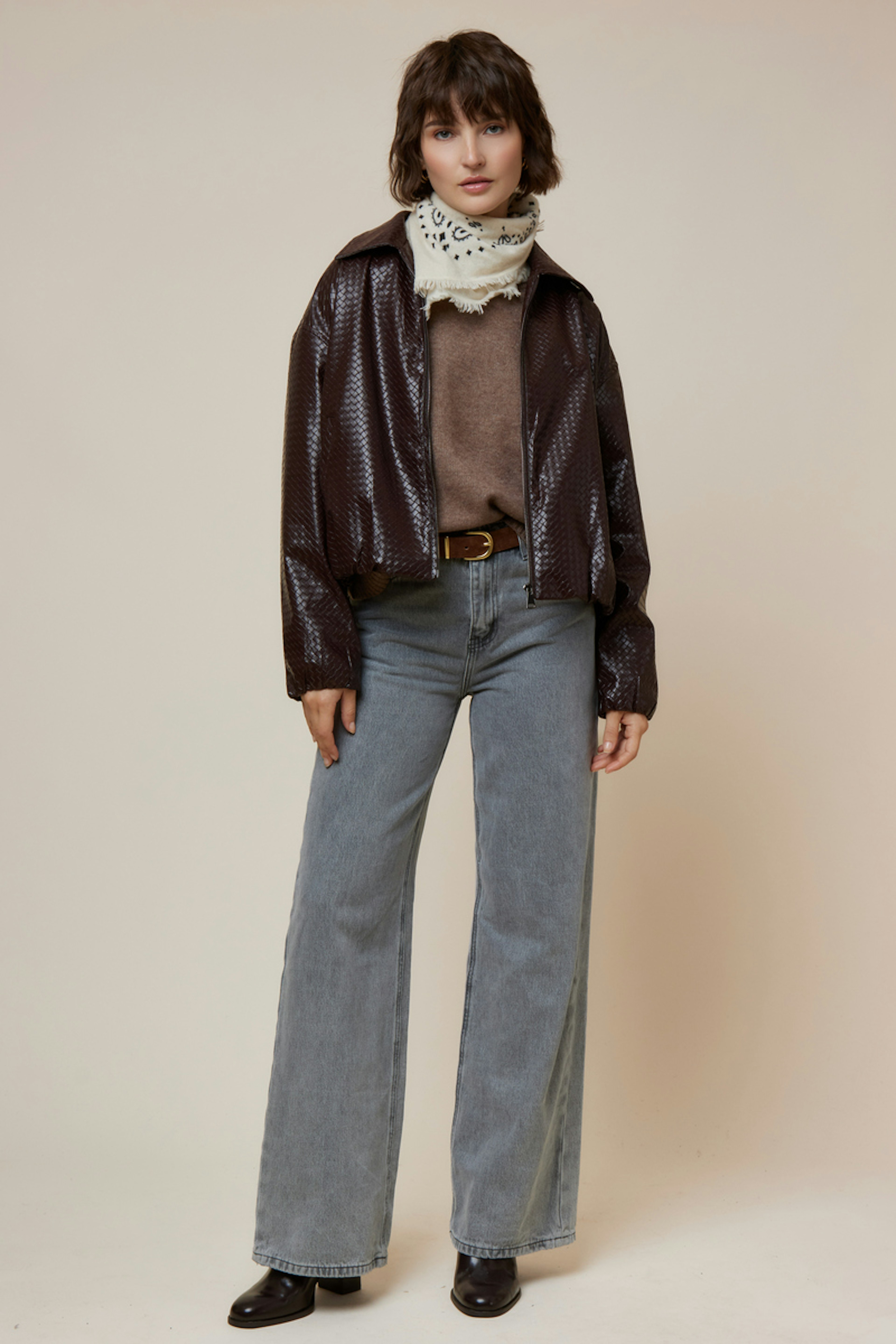 Associez cette veste à un pull en cachemire pour un look douillet cet hiver. Ajoutez une écharpe à motifs pour un style chic sans effort. • Veste avec texture tressée • Coupe ample et décontractée • Épaules légèrement tombantes • Fermeture éclair frontale • Col chemise classique