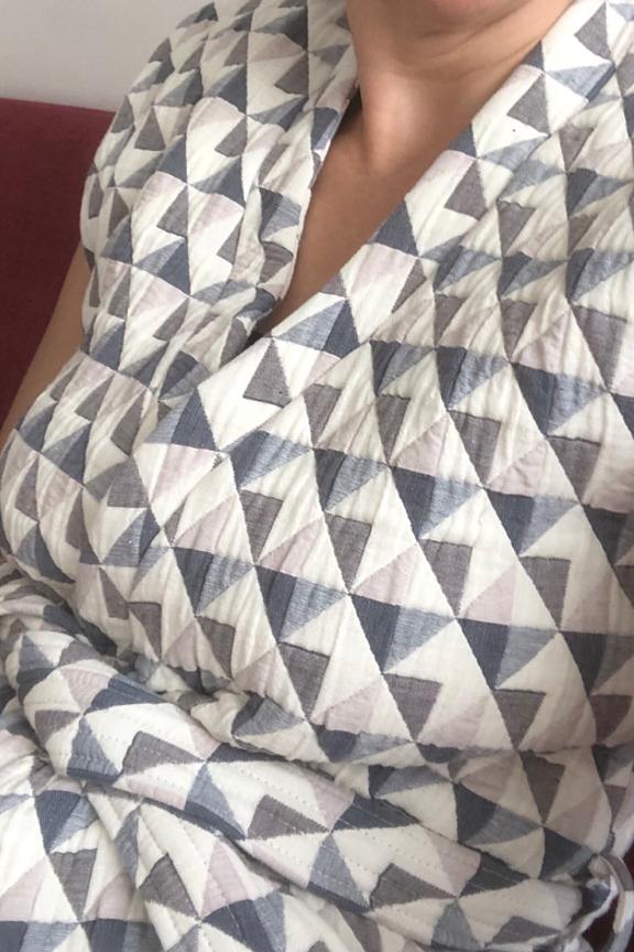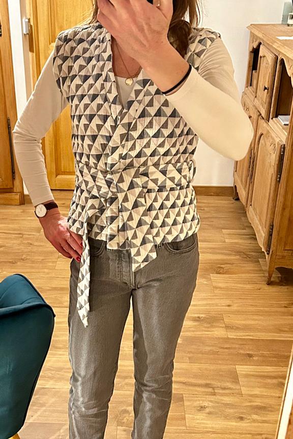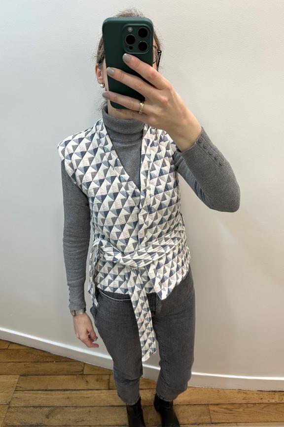 โข Veste Aurore โข Sans manches โข Motif gรฉomรฉtrique abstrait โข Noeud ร la taille