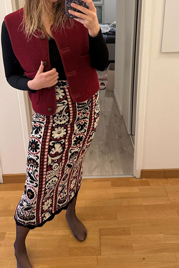Ajoutez une note d'originalitรฉ ร votre tenue avec un pantalon noir ajustรฉ et des bottines. Cette veste est votre alliรฉe idรฉale pour un hiver cosy. โข Veste ร manches longues โข Coupe droite structurรฉe โข Fermeture ร boutons dรฉcoratifs โข Deux poches avant pratiques โข Motif floral contrastant