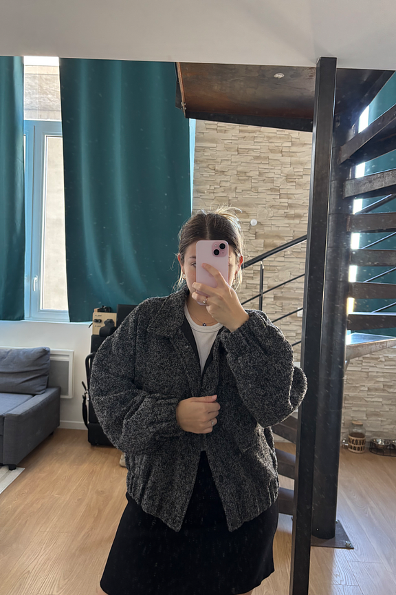“Chouette veste , tres chaude . Portee en.interieur sur un Jean Noir ,”