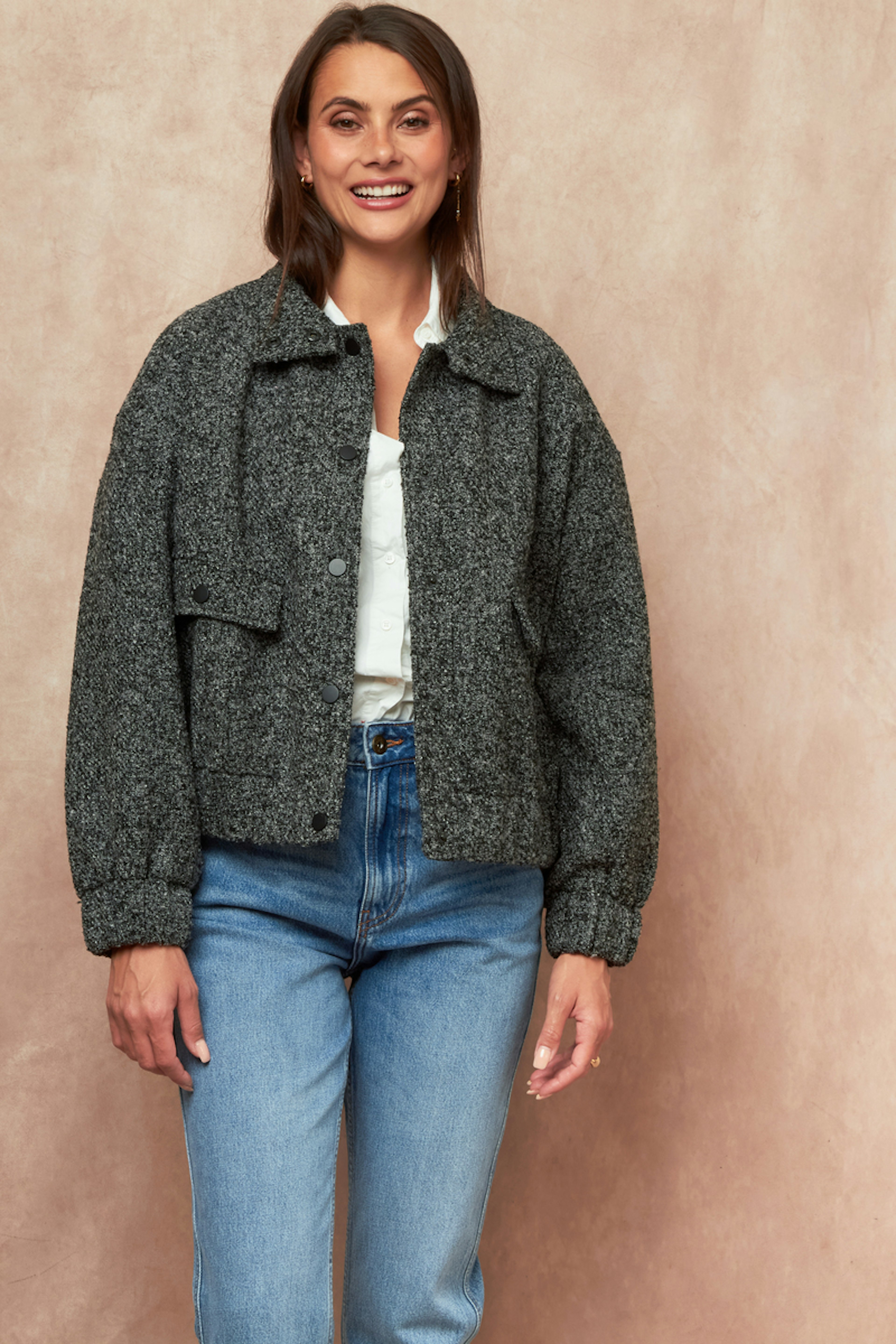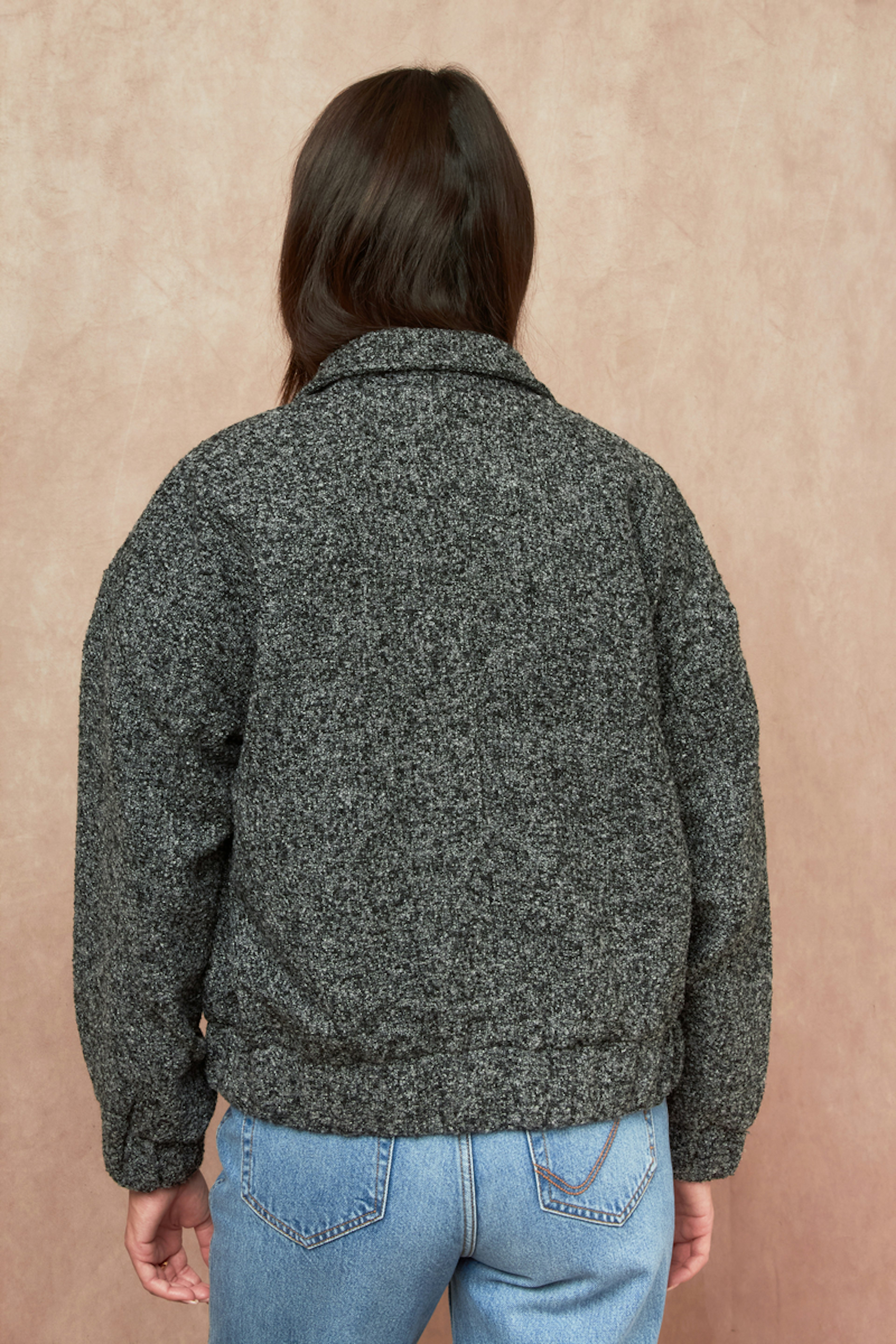 Portez cette veste avec un pull en cachemire et des bottines pour un look chic d'hiver. • Veste en laine • Coupe courte • Manches longues • Col chemise • Poches à rabat