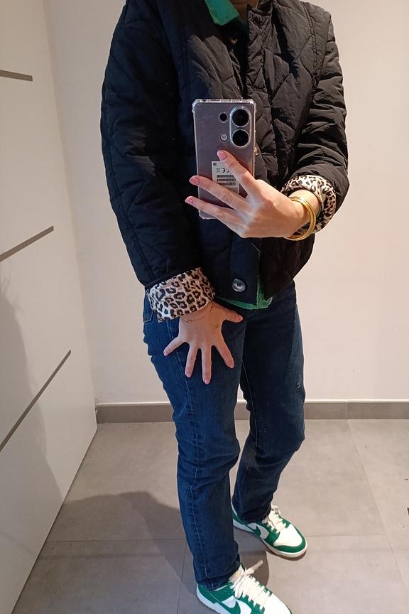 Pour une touche de chic hivernal, associez cette veste matelassรฉe avec une jupe plissรฉe fluide et des bottes hautes. Parfait pour les journรฉes froides d'hiver. โข Veste matelassรฉe โข Coupe ample โข Manches longues โข Fermeture ร boutons โข Intรฉrieur motif lรฉopard