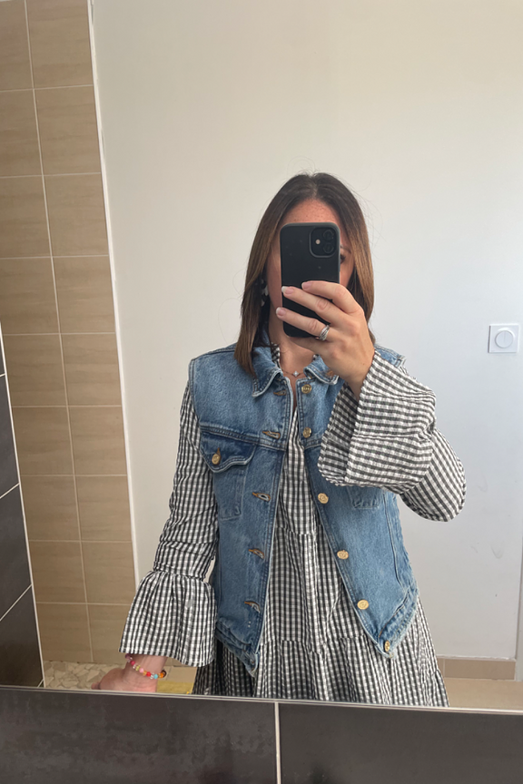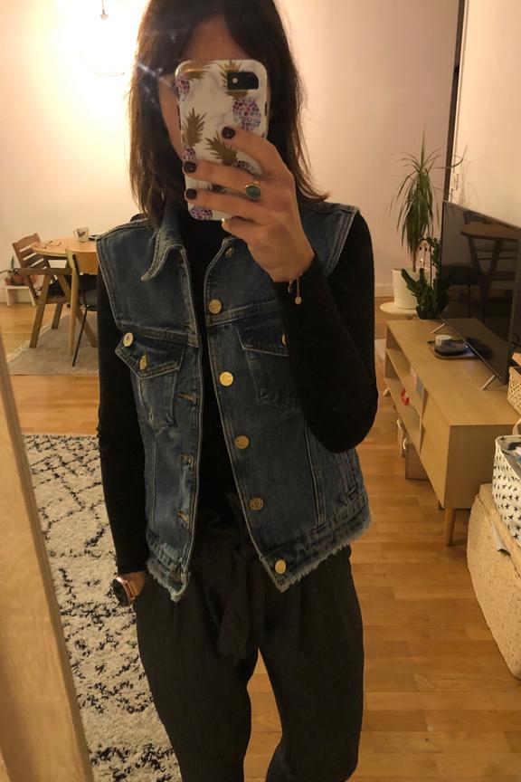 โข Veste en jean sans manches โข Poches ร rabat โข Patte de boutonnage โข Conรงue en coton bio โข Bord franc โข Idรฉale pour donner un style rock ร vos tenues