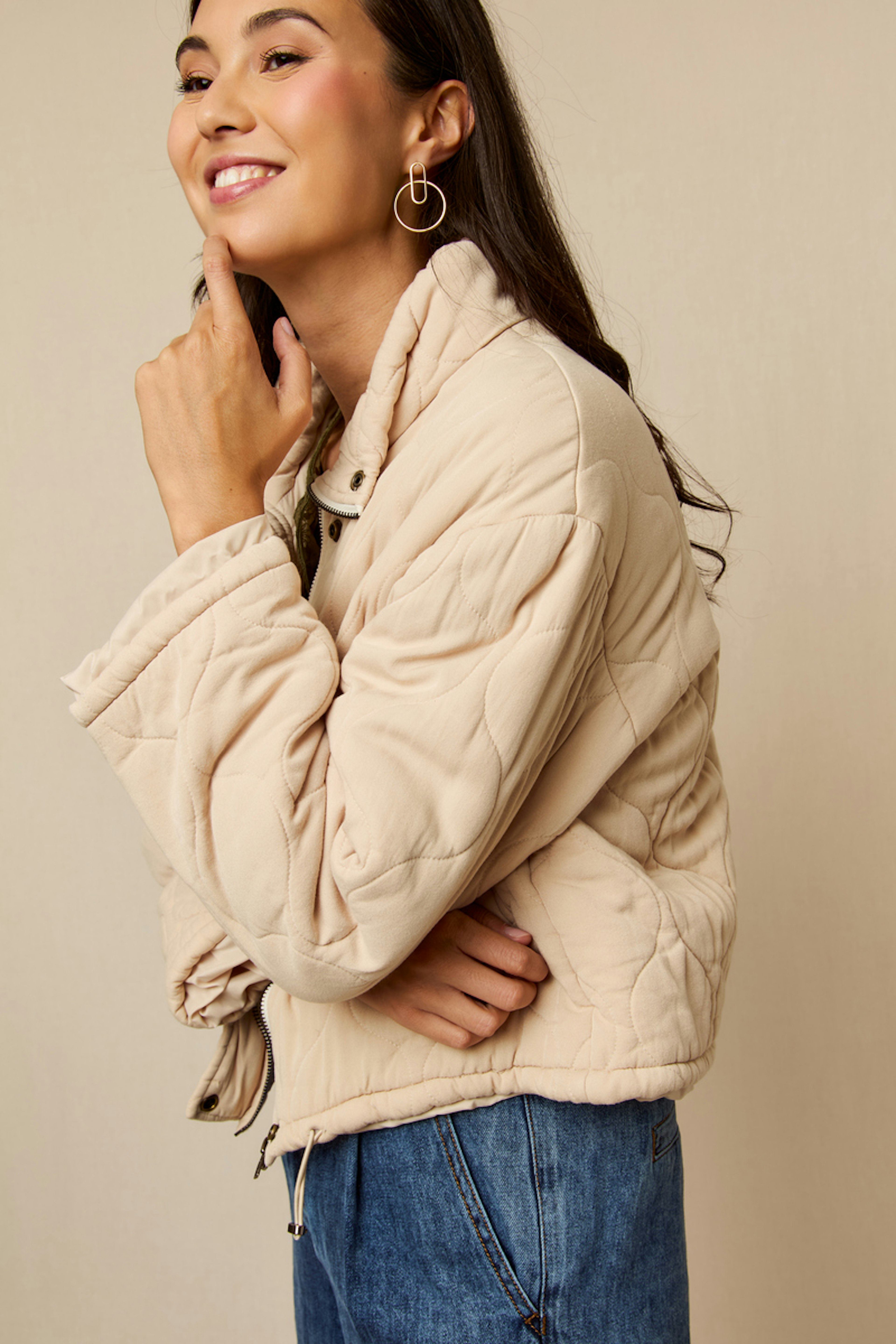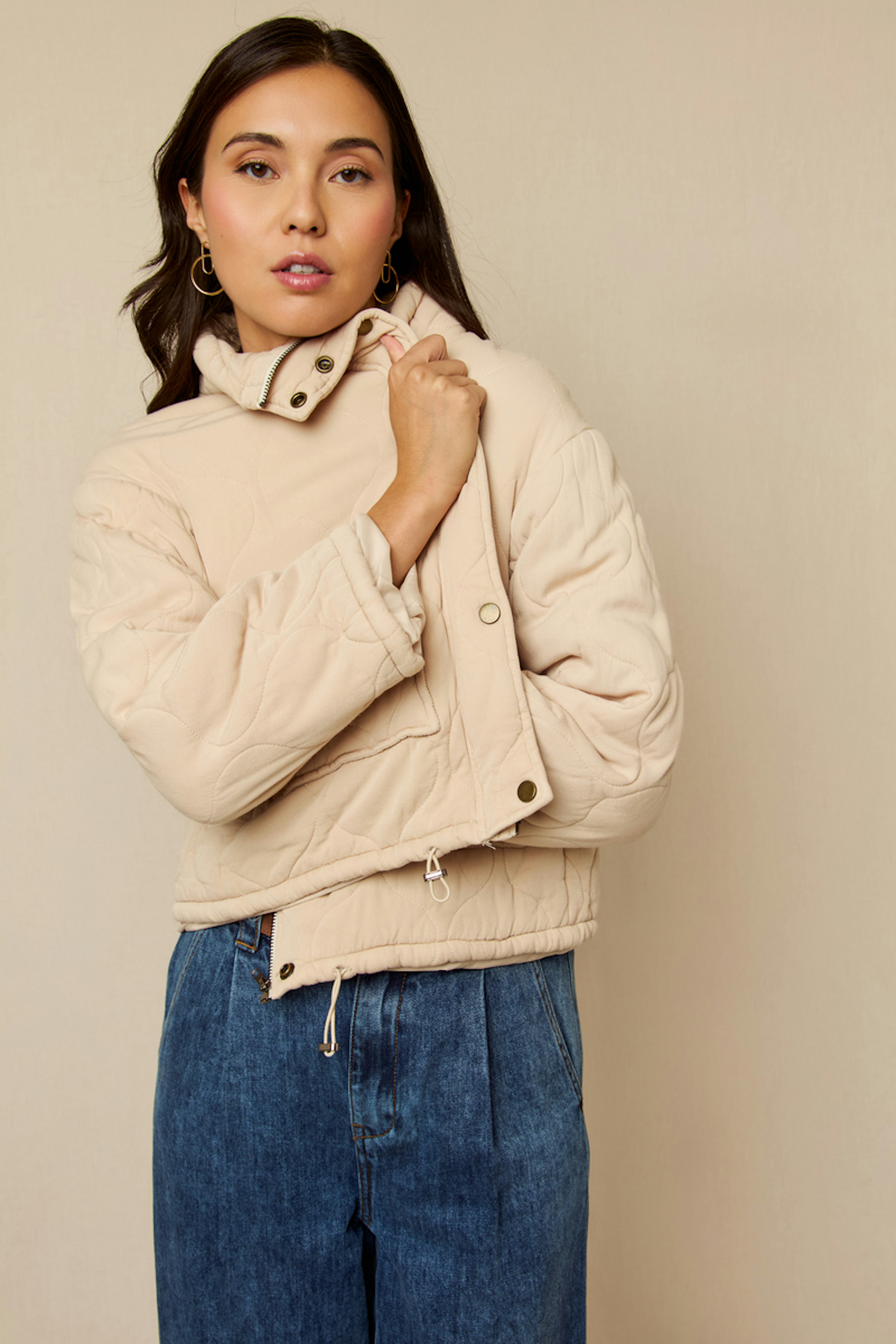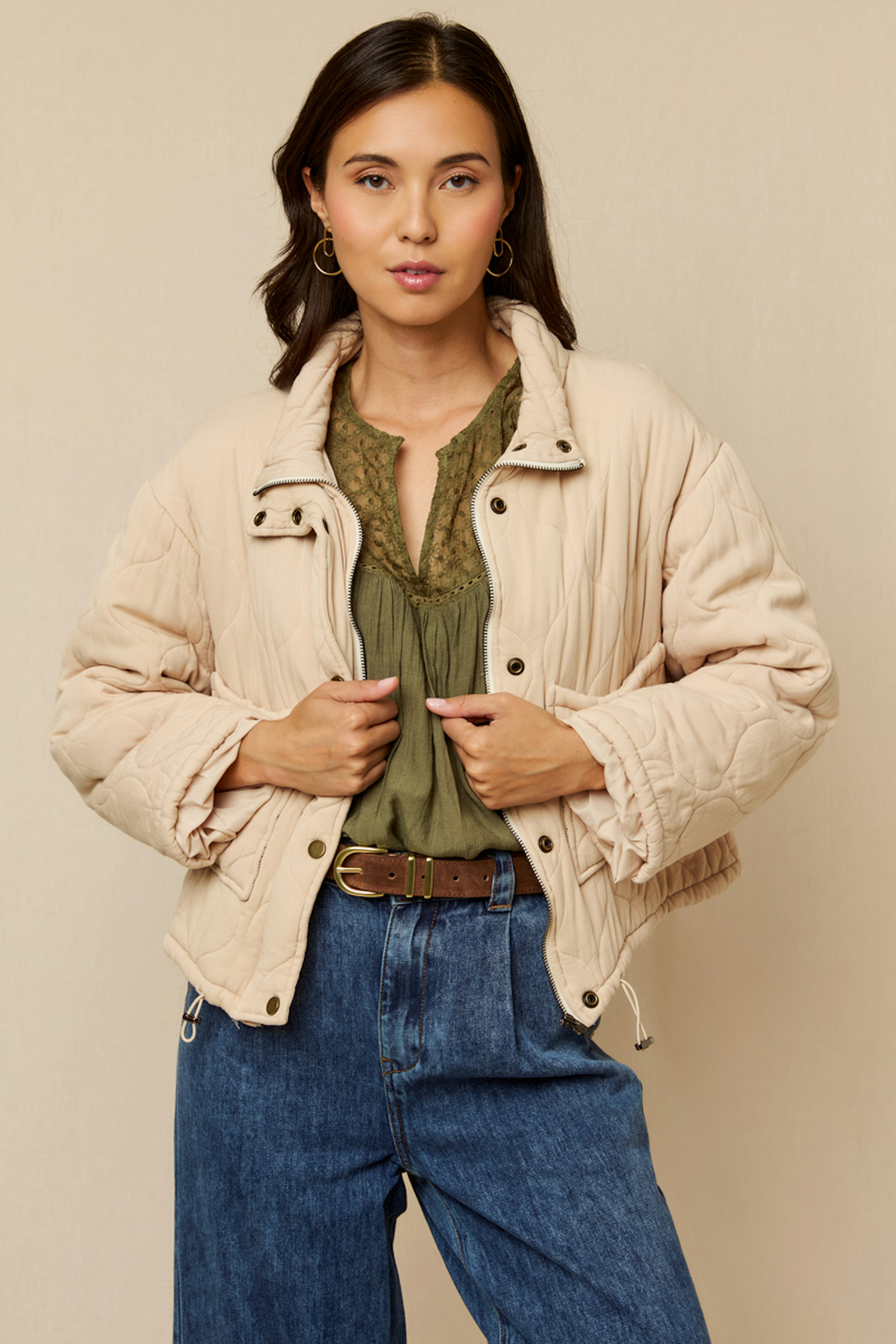 Ajoutez une écharpe en laine et des bottines pour un look chic et cosy en hiver. • Veste matelassée • Coupe ample et confortable • Manches longues • Fermeture par boutons pression • Poches à rabat pratiques