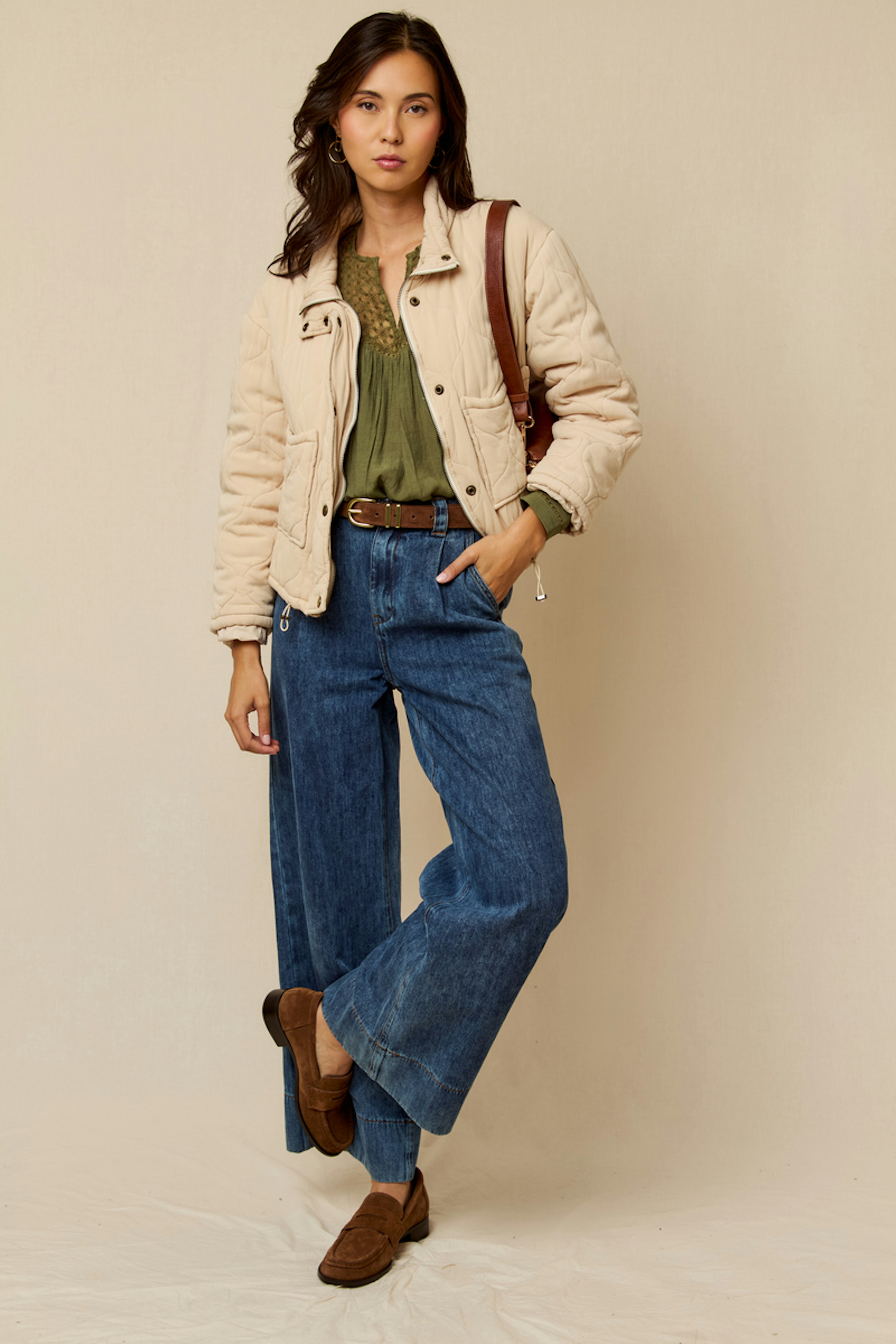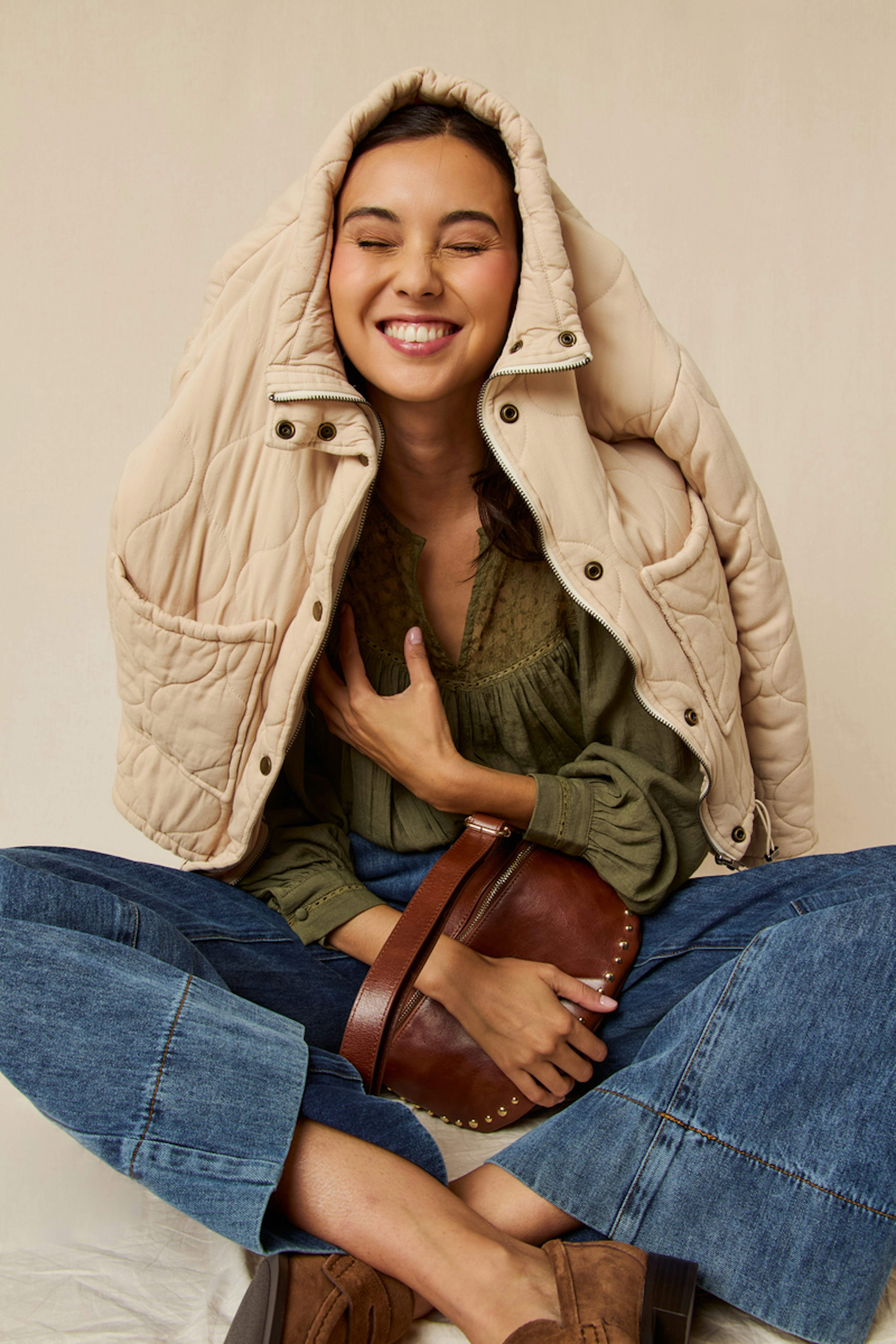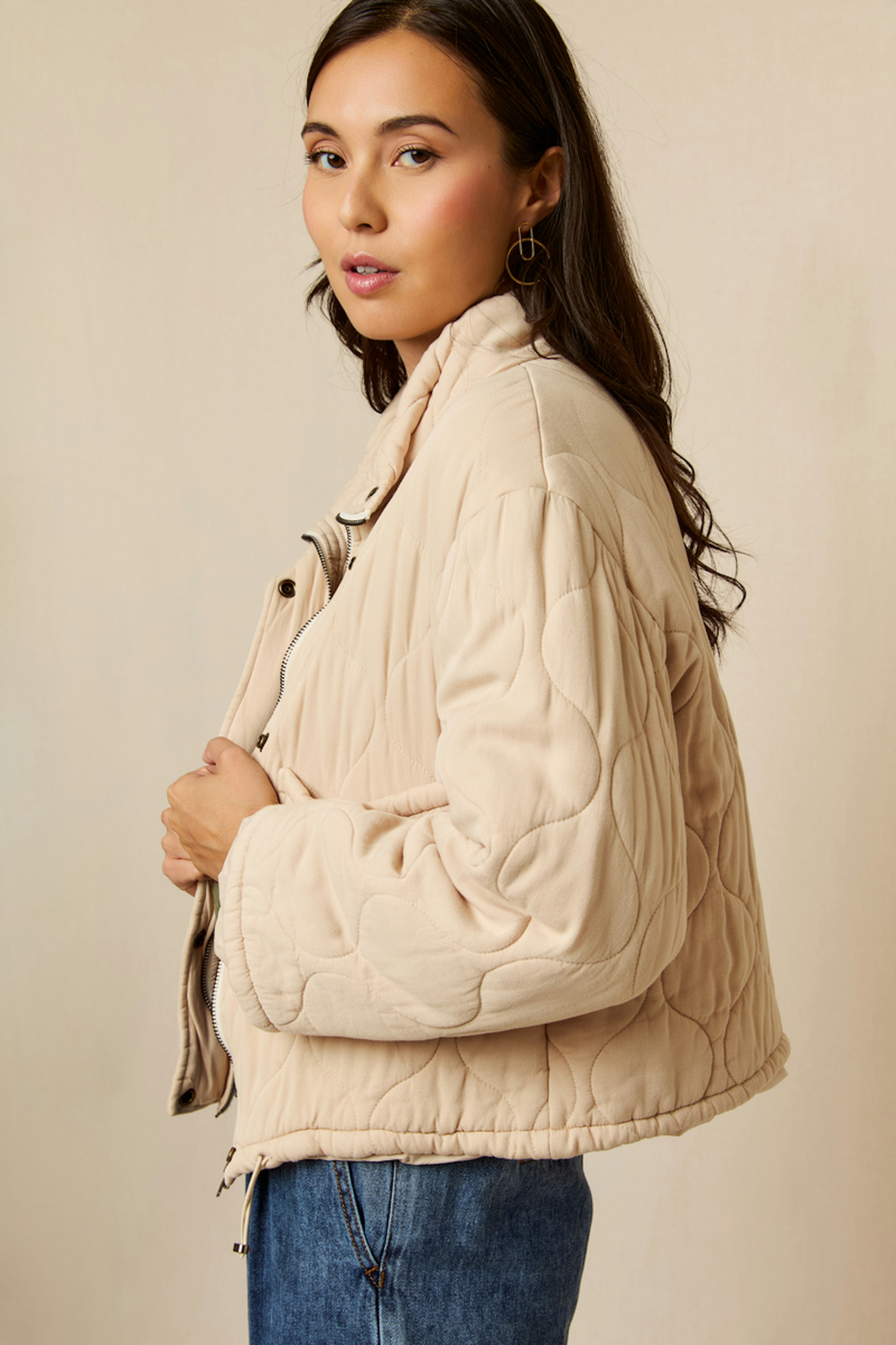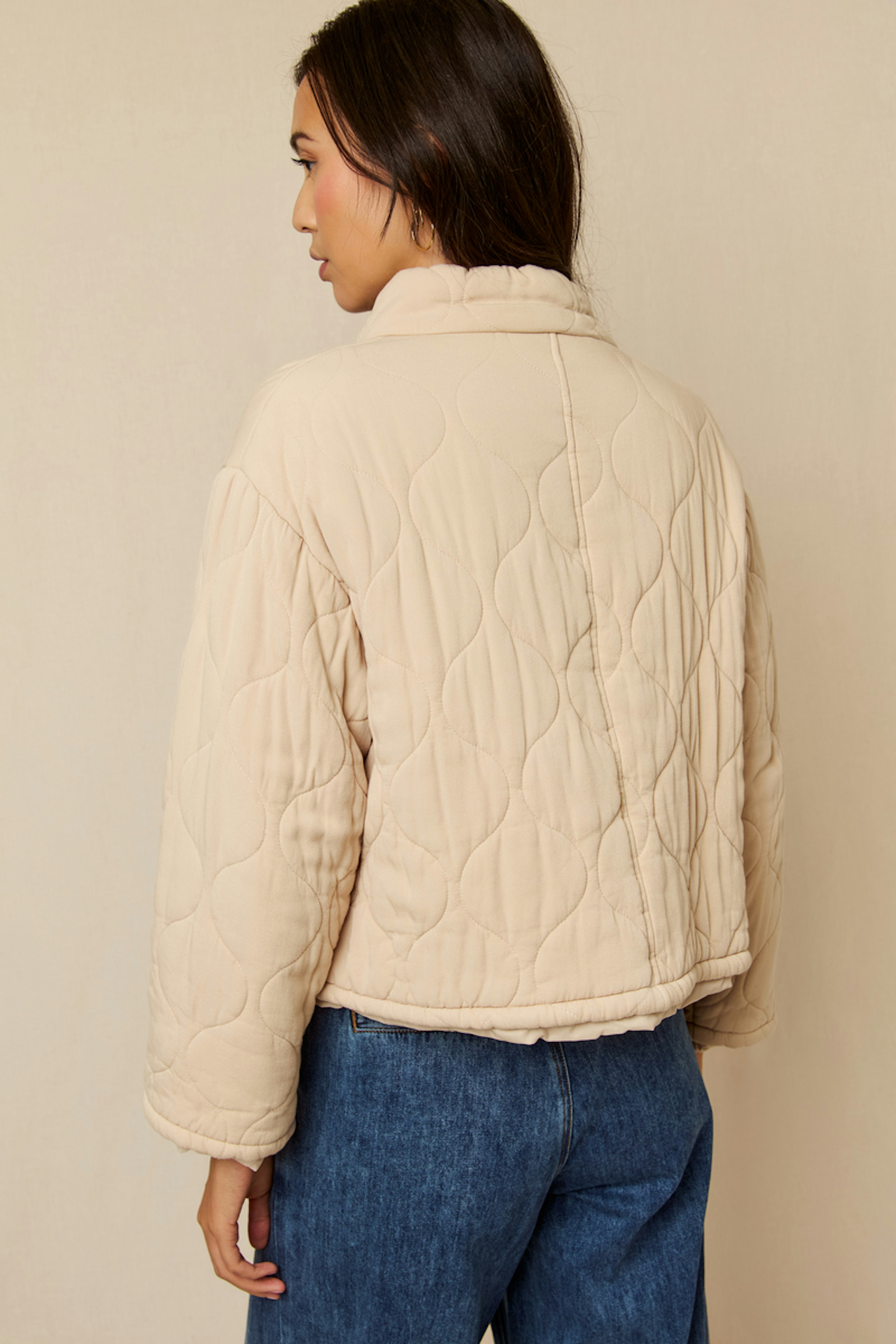 Ajoutez une écharpe en laine et des bottines pour un look chic et cosy en hiver. • Veste matelassée • Coupe ample et confortable • Manches longues • Fermeture par boutons pression • Poches à rabat pratiques