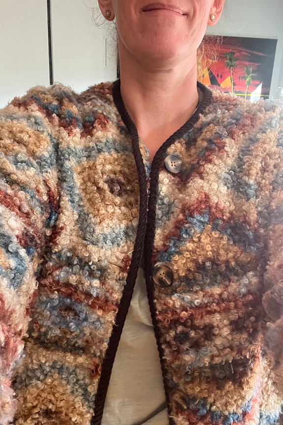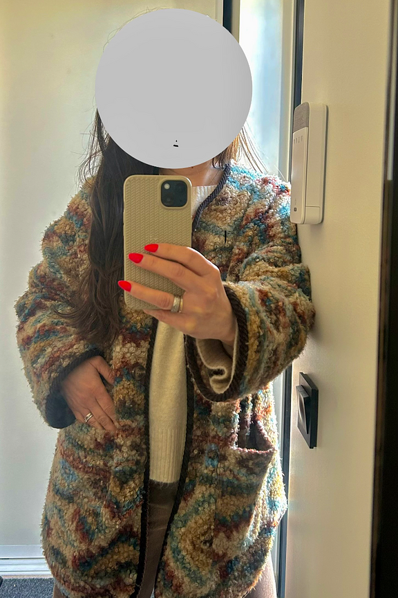 Pour un look chic et décontracté, associez cette veste à un jean droit et des bottines en cuir. Idéale pour réchauffer vos journées d'hiver avec style. • Veste imprimée • Coupe ample • Manches longues • Fermeture à boutons • Motif géométrique