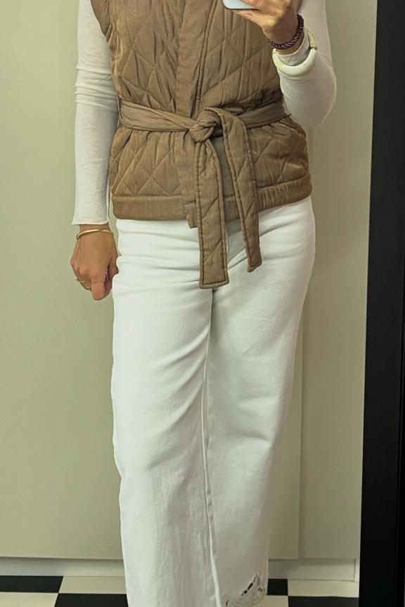 Ajoutez une touche moderne à votre garde-robe en associant cette veste sans manches à une chemise blanche et un jean pour un look chic et décontracté. Parfait pour les jours frais. • Veste sans manches • Coupe cintrée • Longueur standard • Tissu doux et soyeux • Ceinturée avec broderies coton
