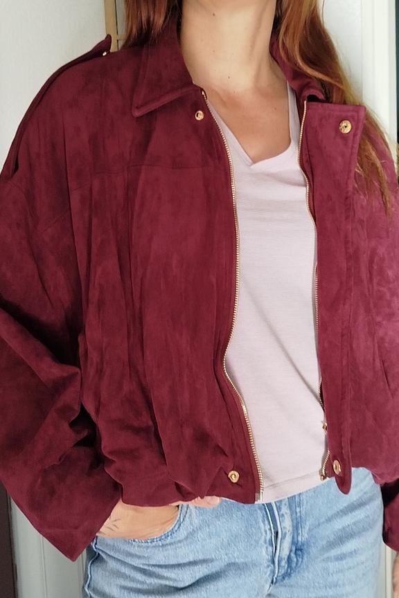 Associez cette veste avec un jean slim et des bottines pour un look hivernal chic et confortable. • Veste en suédine • Coupe ample • Fermeture éclair • Col chemise