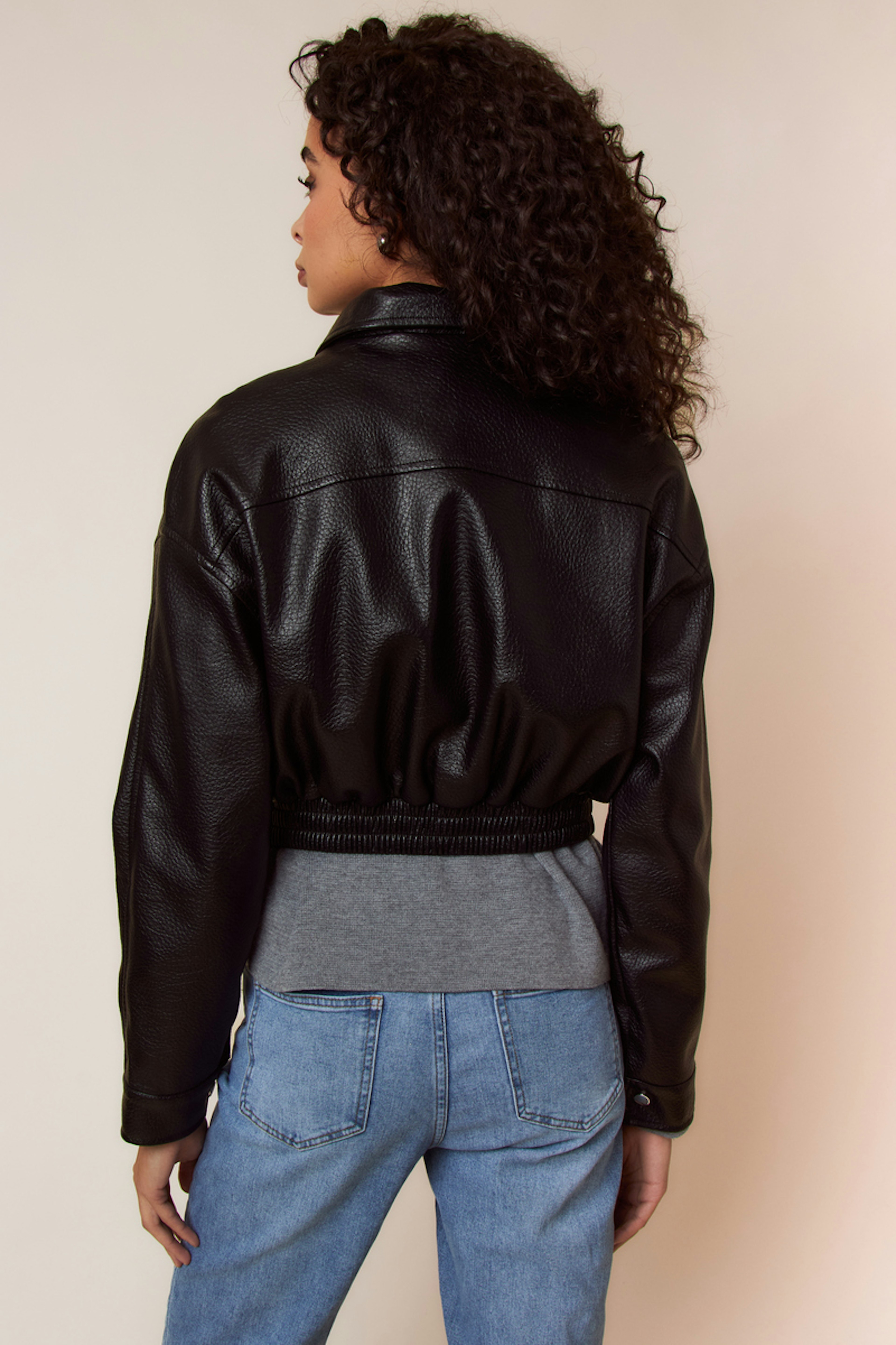 Portez cette veste avec un jean slim et des bottines pour un look chic et moderne en hiver. โข Veste ajustรฉe โข Manches longues โข Fermeture zippรฉe โข Col classique โข Texture en cuir