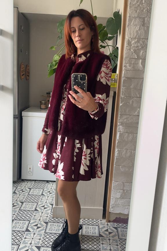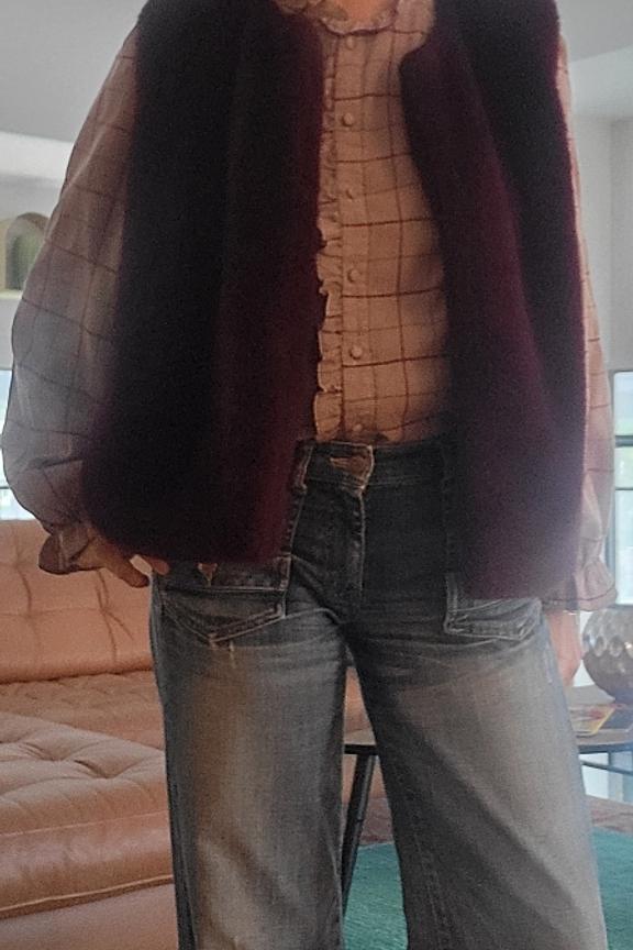 Ajoutez une touche de glamour à vos tenues hivernales avec ce gilet en fausse fourrure. Portez-le sur une chemise blanche et un jean noir pour un look chic et décontracté. • Gilet sans manches • Coupe droite • Fermeture sans boutons • Texture douce • Couleur rouge intense