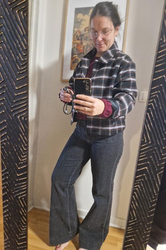 “Couleurs automnales. Coupe droite ok pr mon 1m60. Peut toute suite re hausser un look simple avec le motif !”