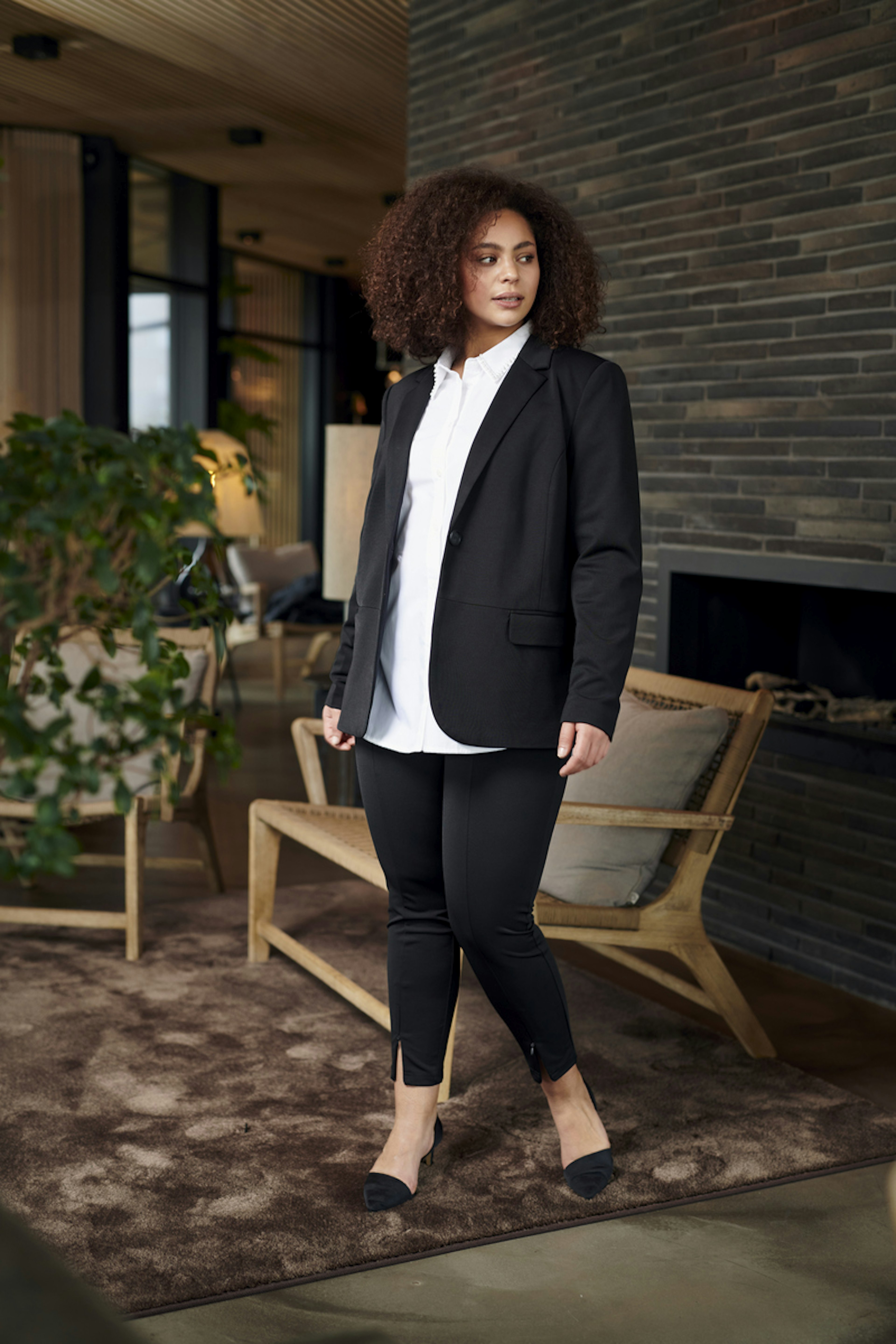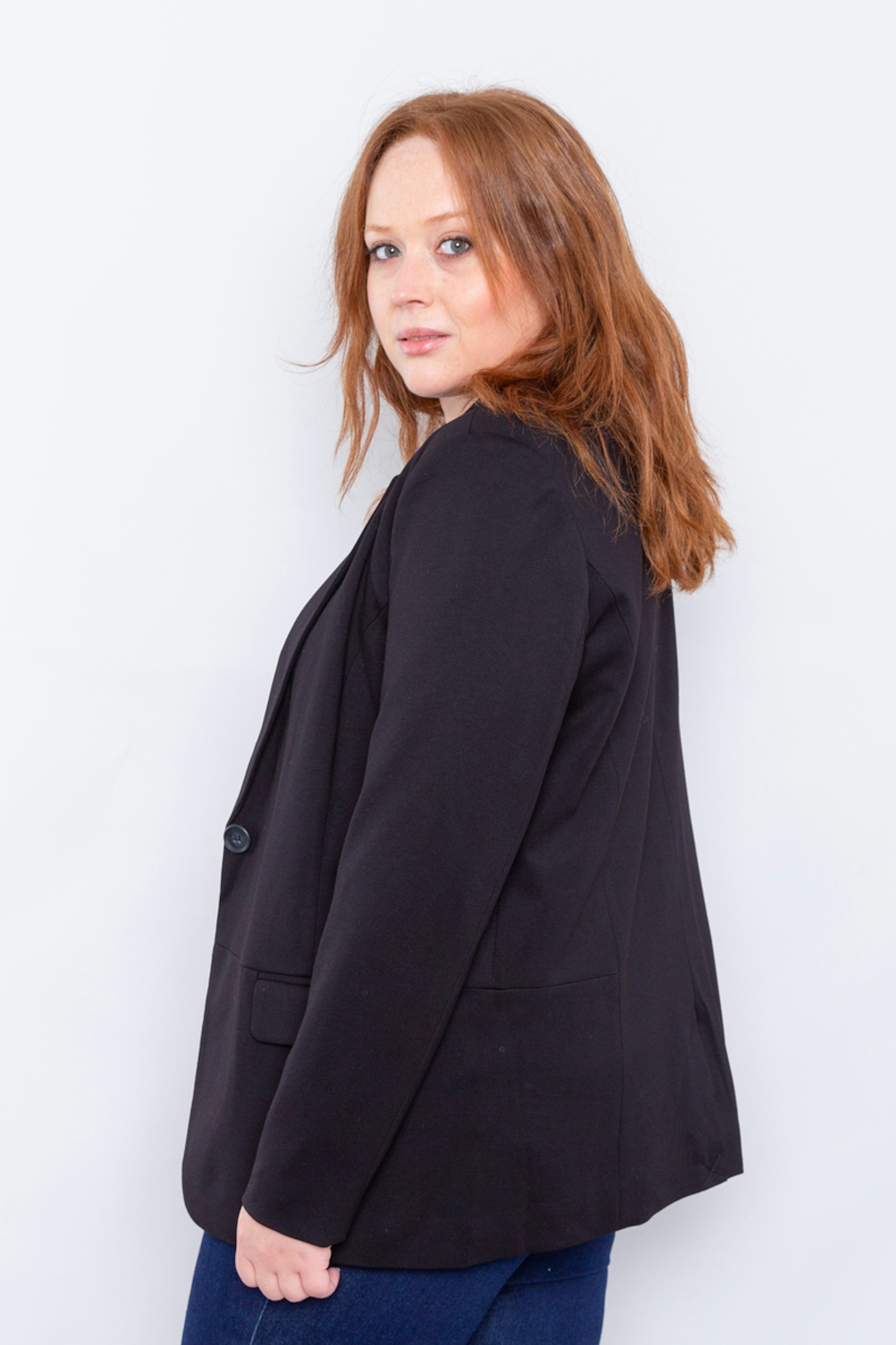 โข Veste blazer noire โข Fermeture par un bouton sur le devant โข Doublure