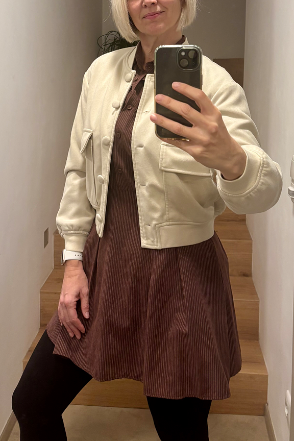 Portez cette veste beige avec un jean taille haute et des bottines pour un look chic. Idéale pour les journées fraîches d'hiver. • Veste en polyester • Manches longues • Col rond • Fermeture à boutons • Poches plaquées