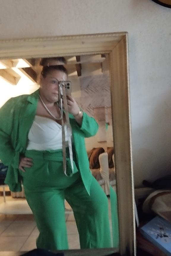 โข Blazer vert โข Maille gaufrรฉe โข ร associer au pantalon Kia pour un total look !