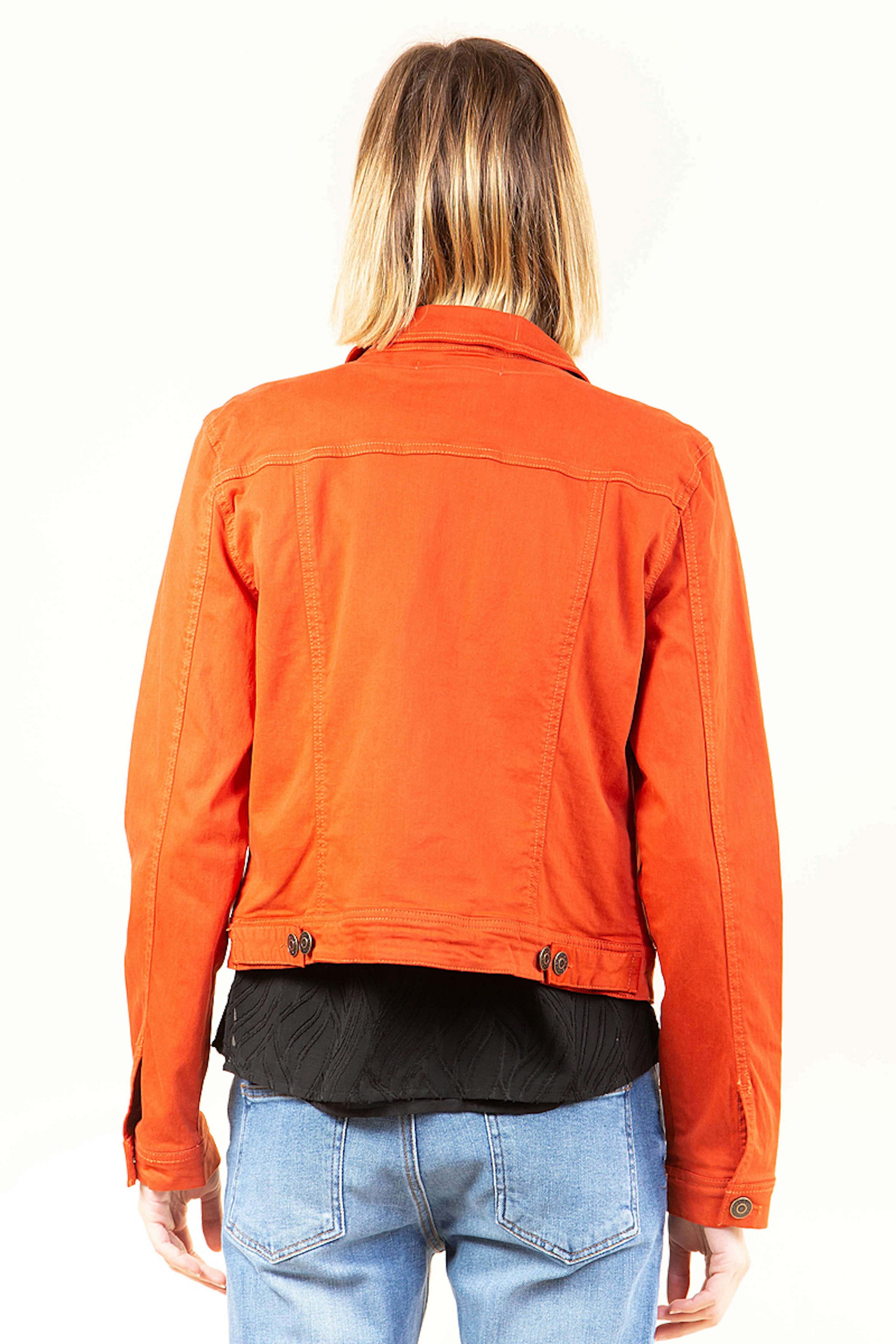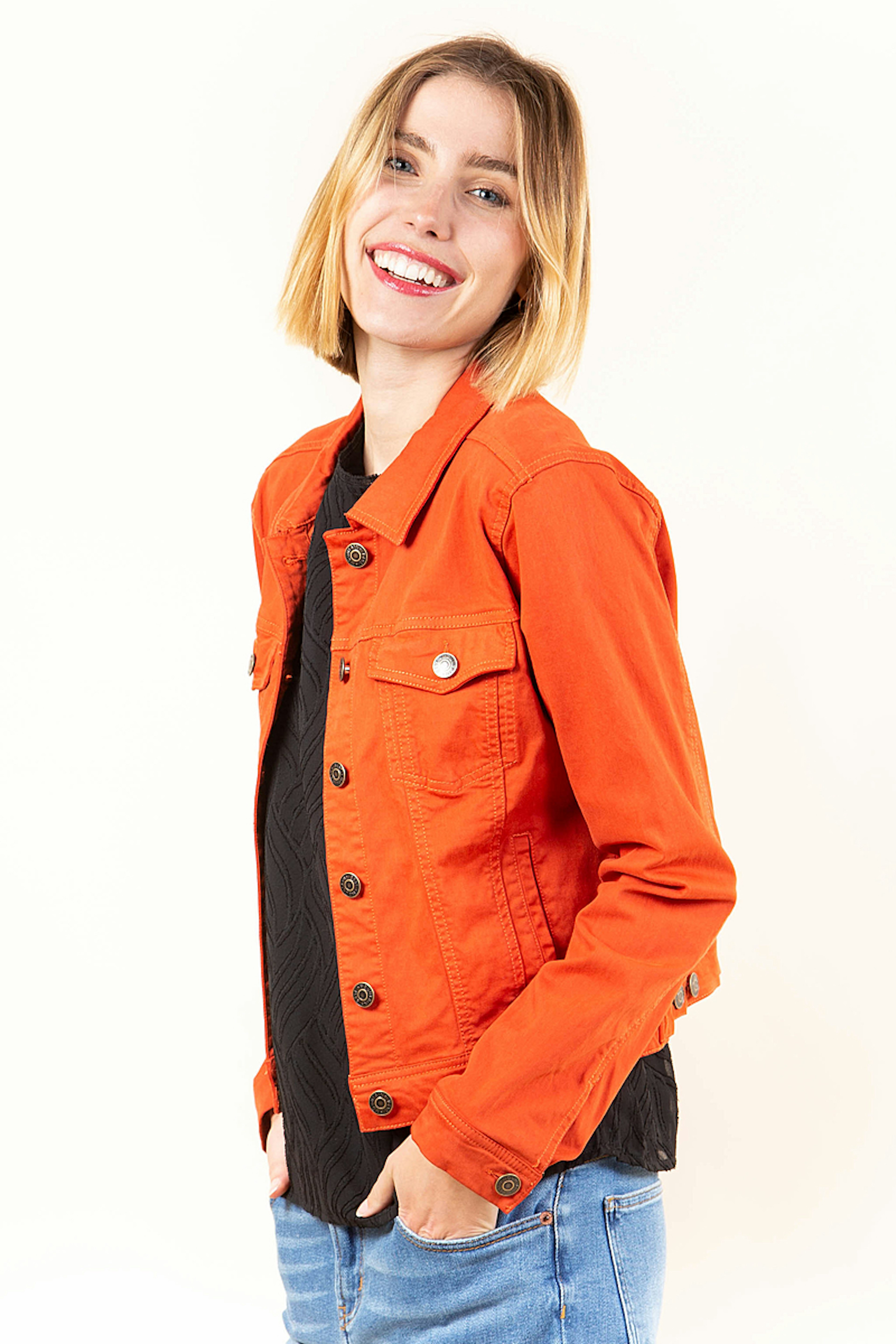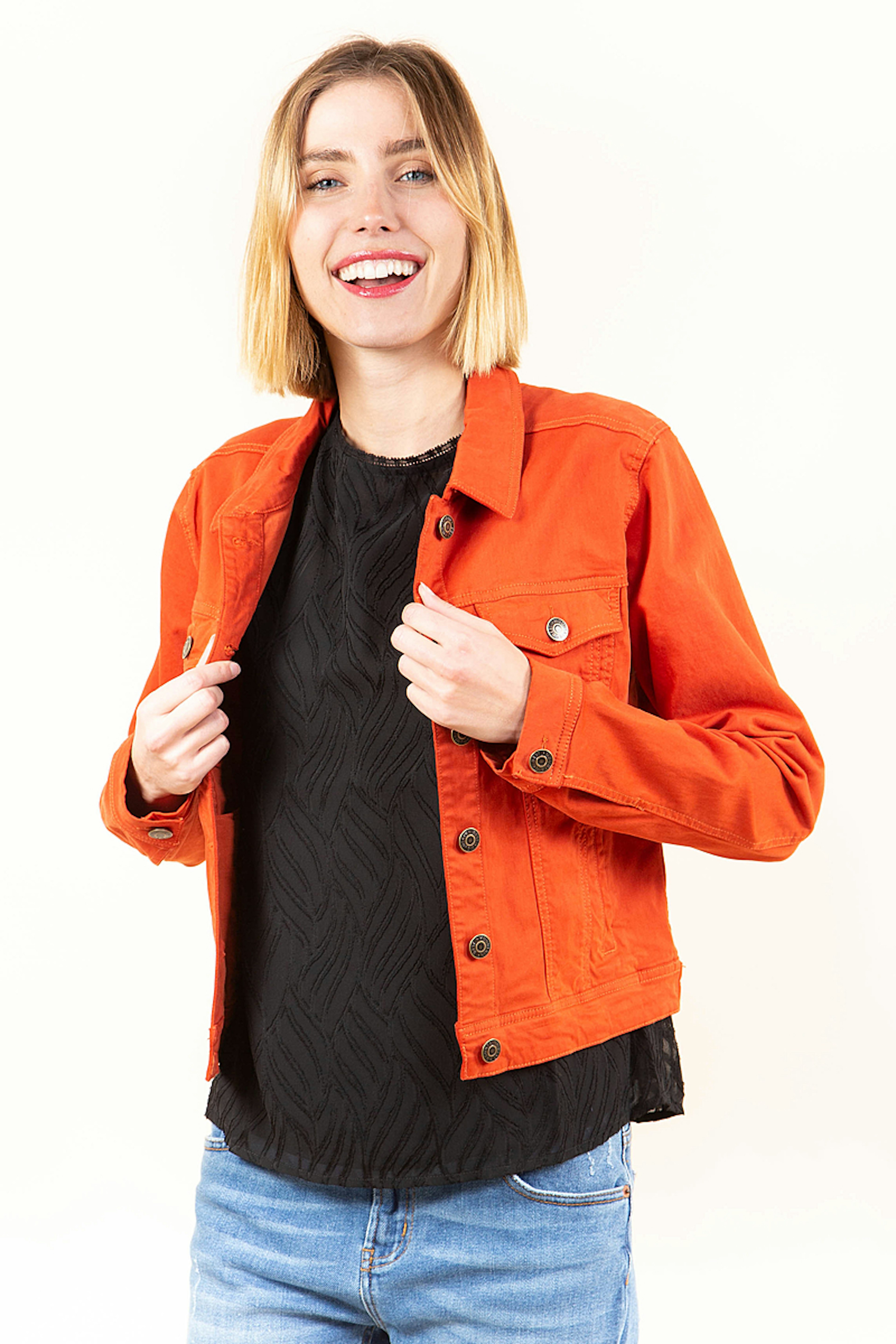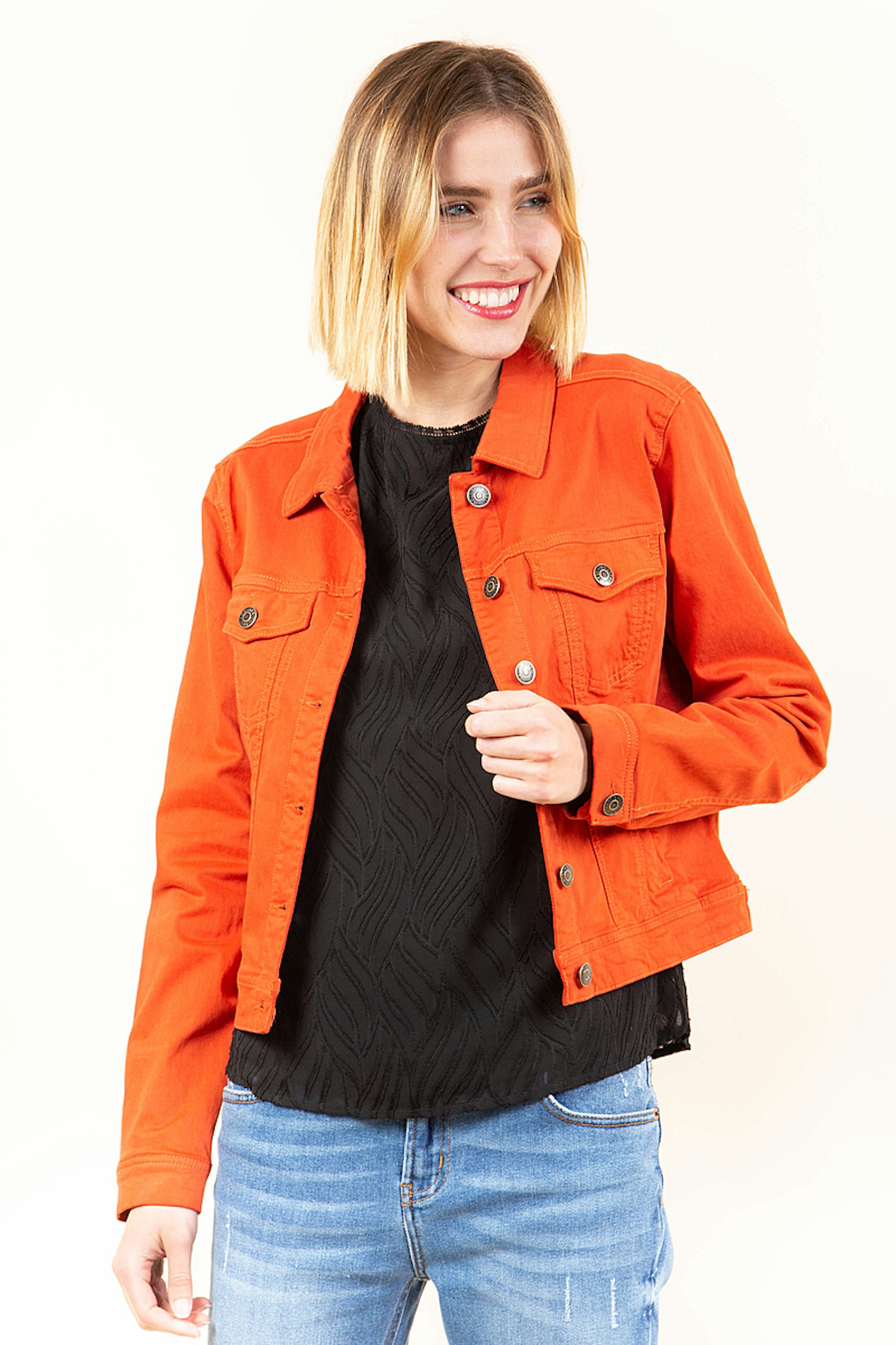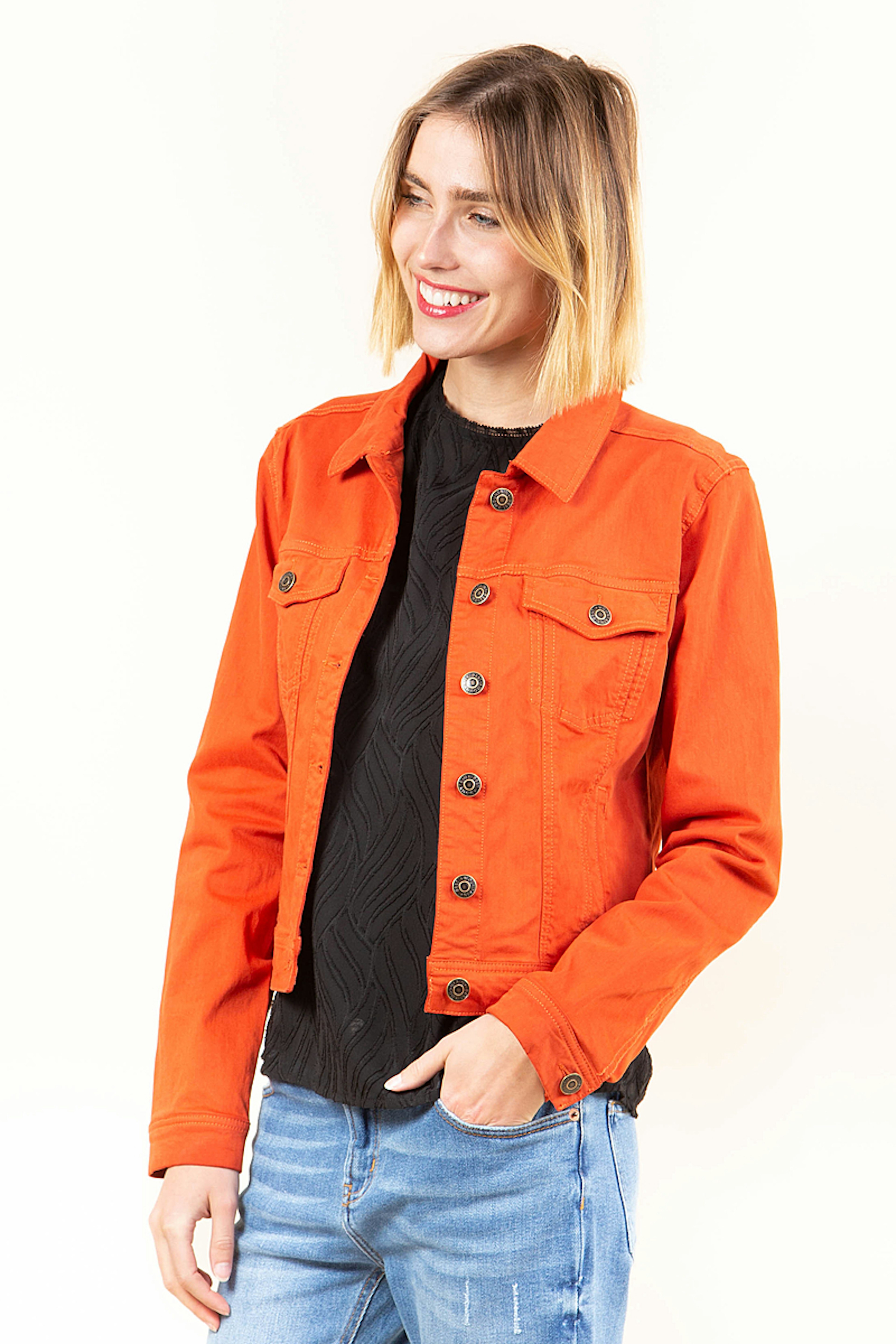 Cette veste orange vif est parfaite pour les beaux jours. Sa coupe courte sera idรฉale pour marquer votre taille.