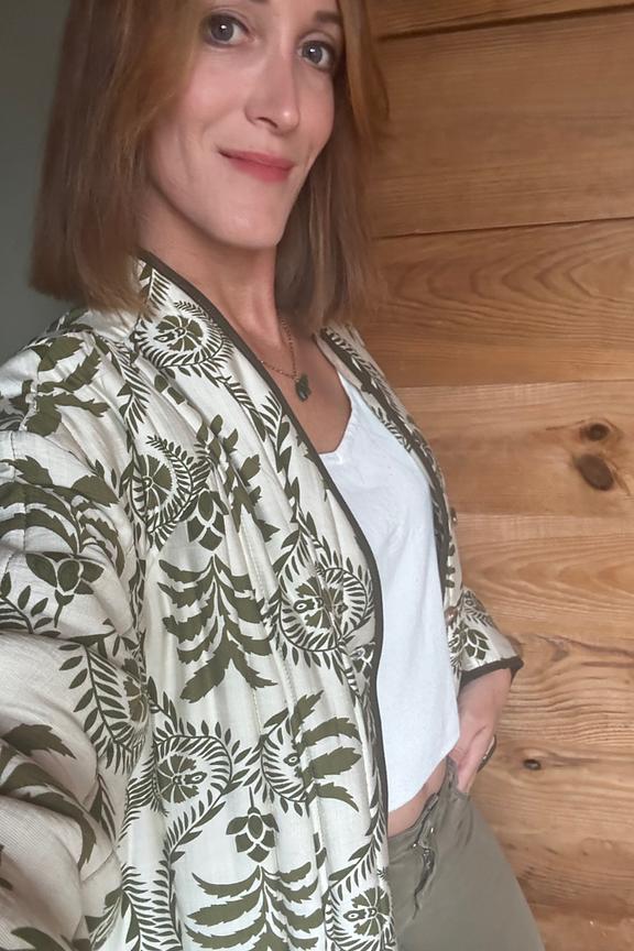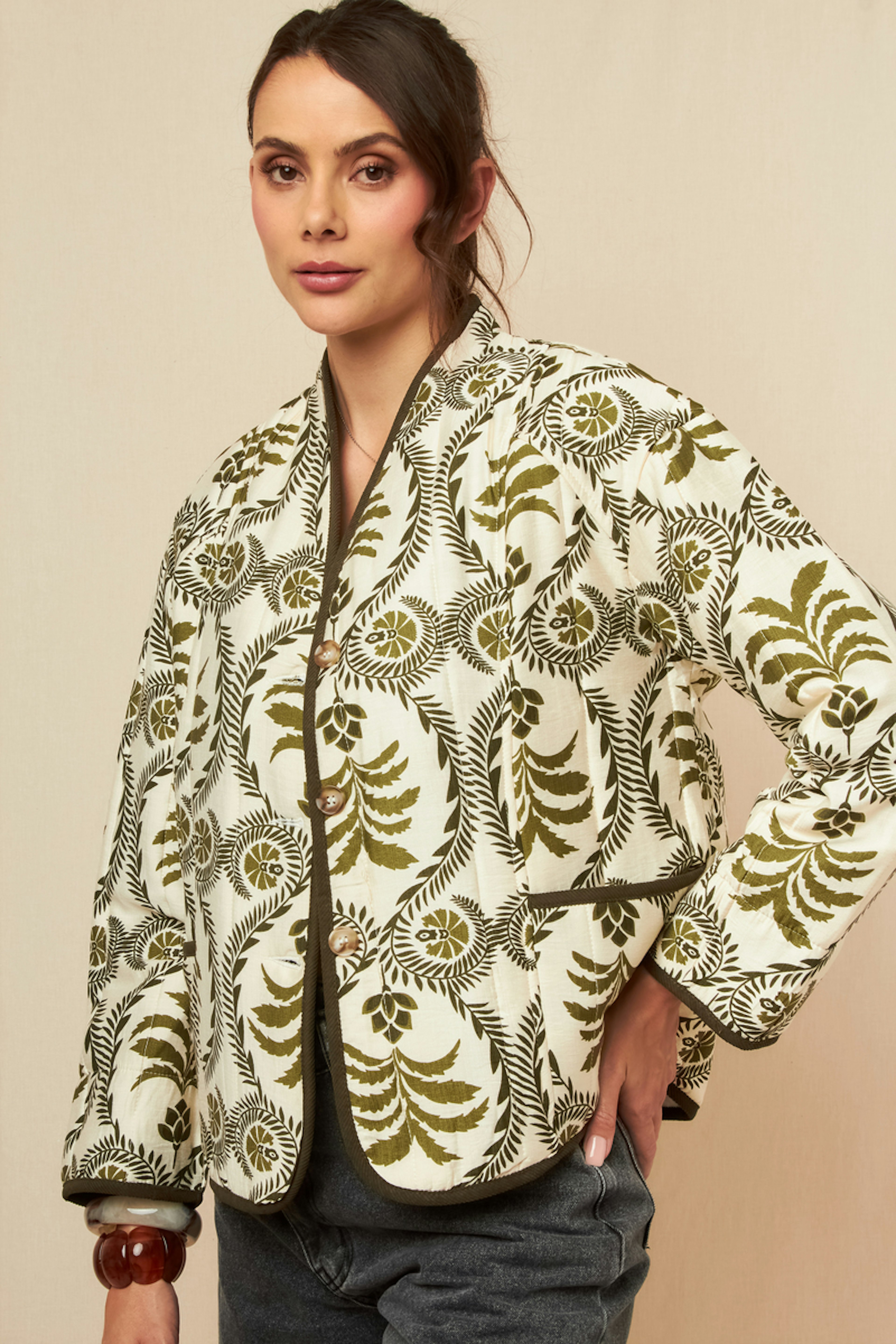 Optez pour un look chic et décontracté en associant cette veste à un jean brut et des bottines en cuir. Un bracelet ou des boucles d'oreilles dorés feront toute la différence pour un style raffiné. • Veste avec imprimé • Manches longues • Col en V • Coupe simple • Bordures contrastées