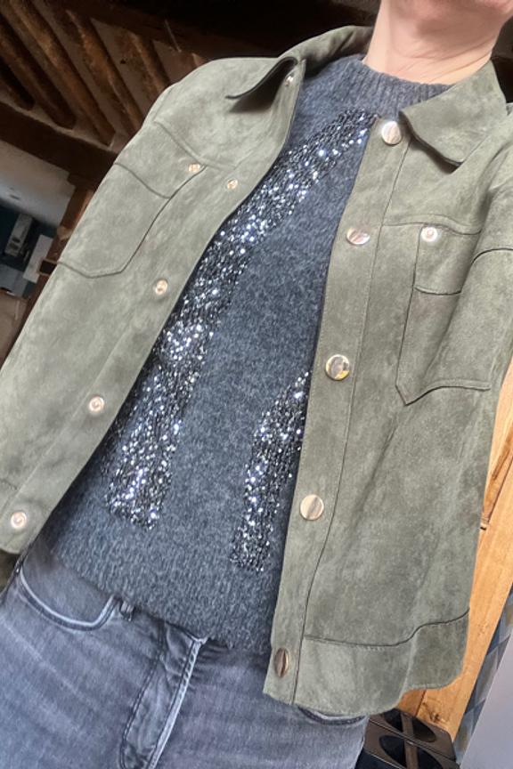 Portรฉe avec un pull en maille et un jean ร motif, cette veste est idรฉale pour un style hivernal chic et moderne. โข Veste coupe courte โข Col chemise โข Manches longues โข Fermeture ร boutons dorรฉs โข Deux poches ร rabat devant