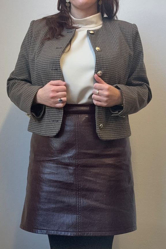 Associez cette veste à un pull col roulé et un jean coupe droite pour une allure raffinée hivernale. • Veste à motif pied-de-poule • Coupe ajustée élégante • Fermeture avec boutons dorés • Manches longues structurées • Encolure ronde sophistiquée