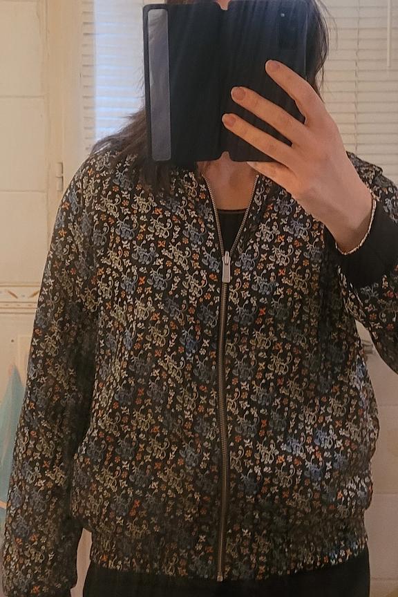 โข Veste bomber imprimรฉe fleurie โข Intรฉrieur ร carreaux โข Bord cรดte noir โข Conรงue en polyester recyclรฉ
