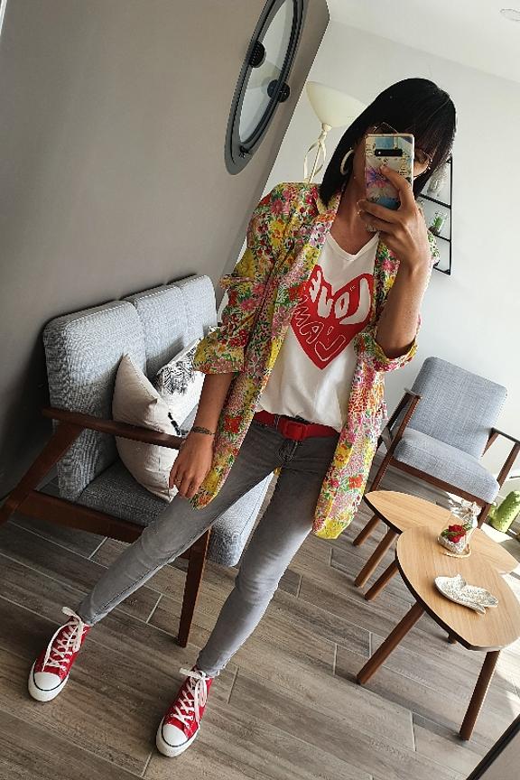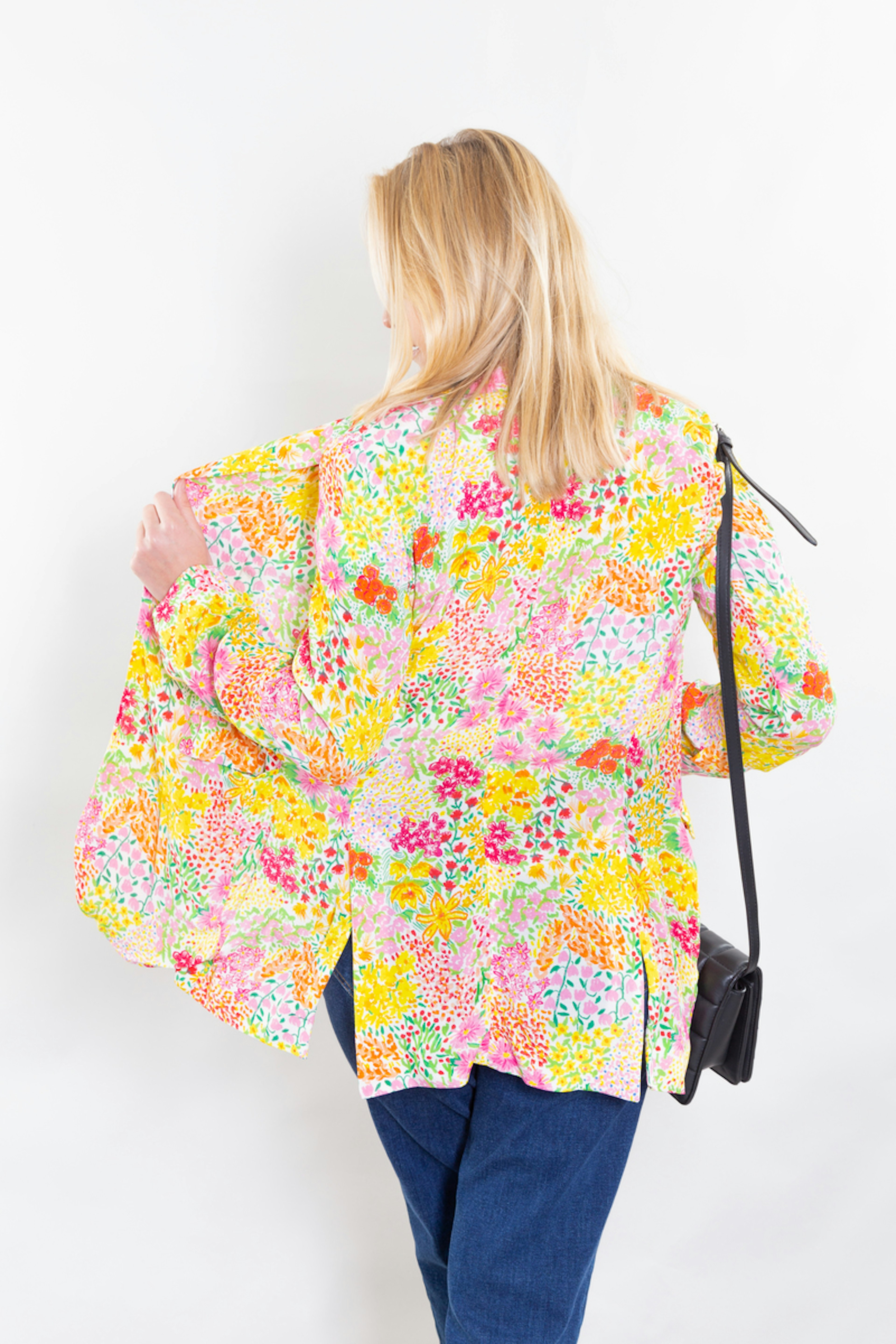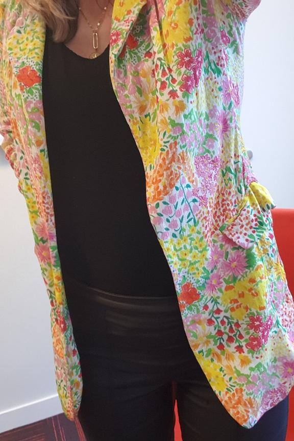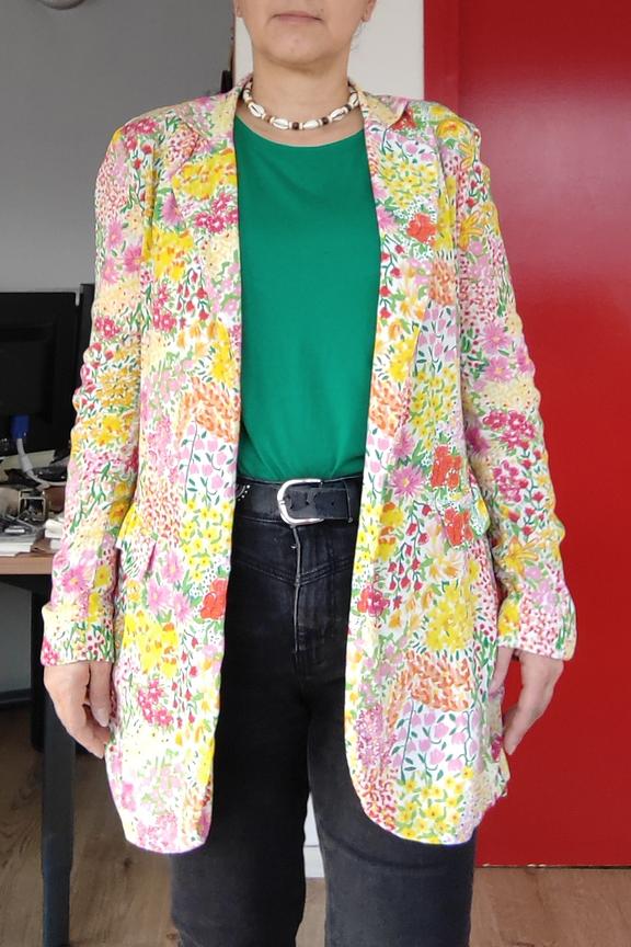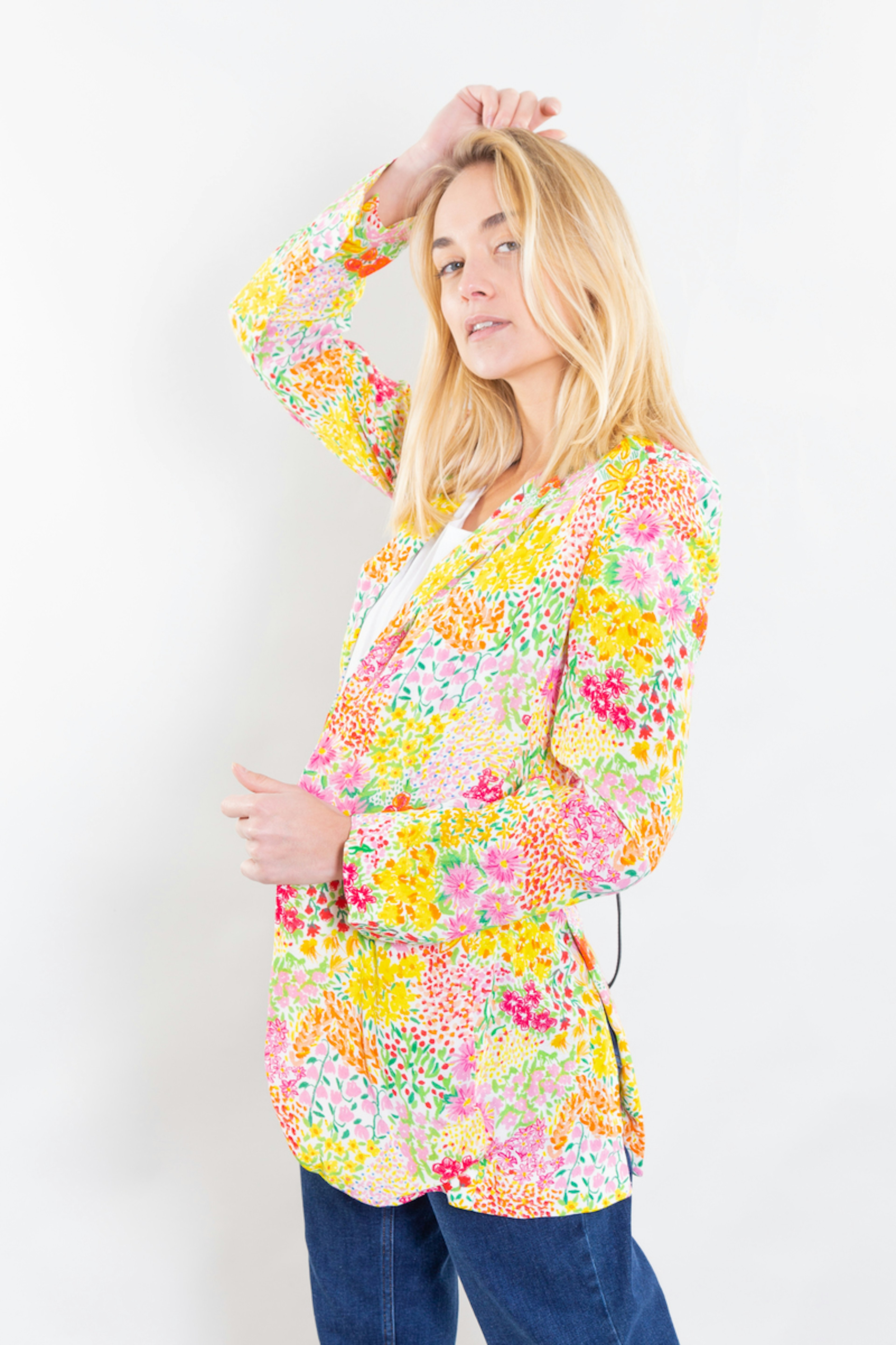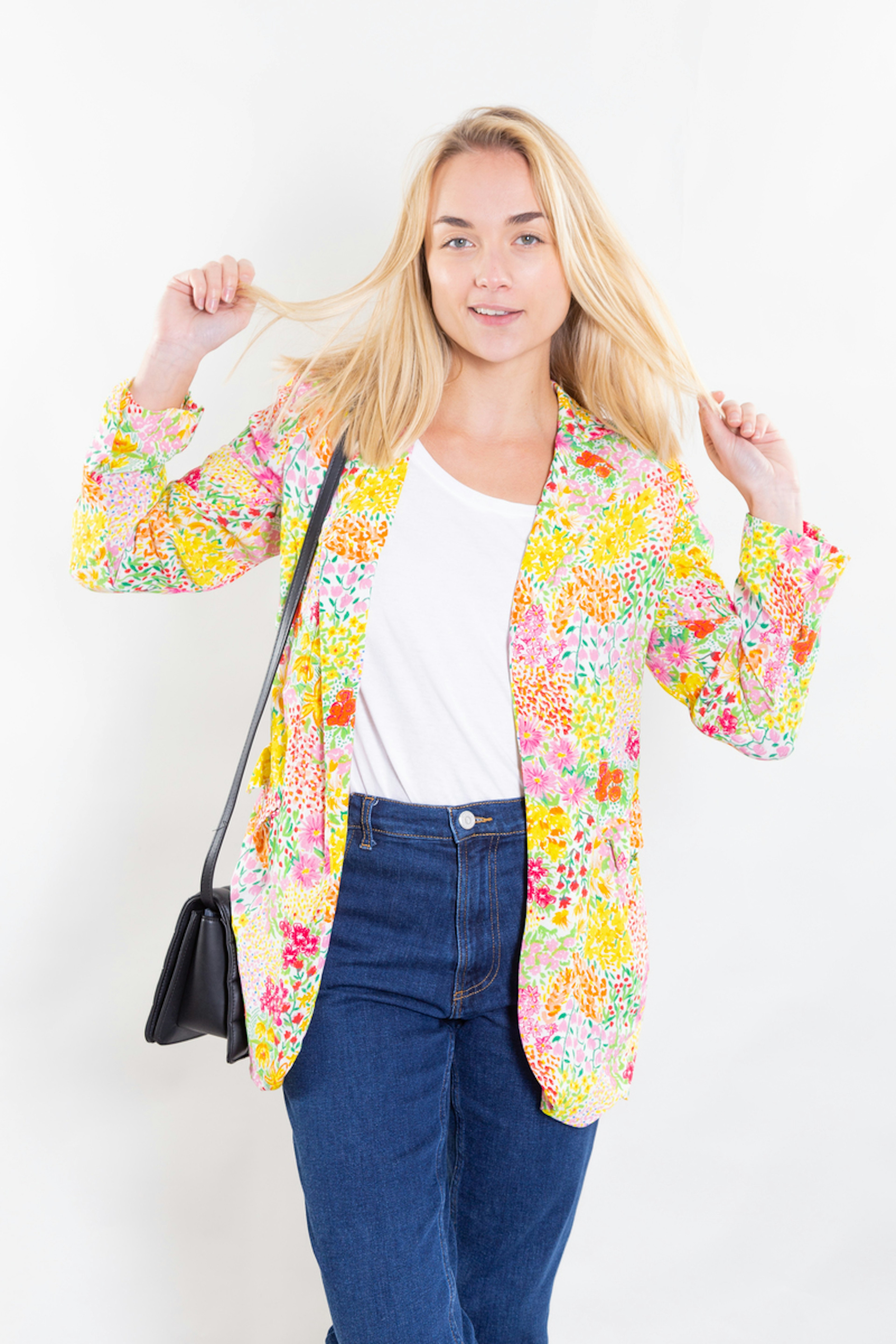 Un rayon de soleil dans votre placard ! โข Veste "blazer" col tailleur โข Imprimรฉ bouquet colorรฉ โข Fines รฉpaulettes โข Non doublรฉe