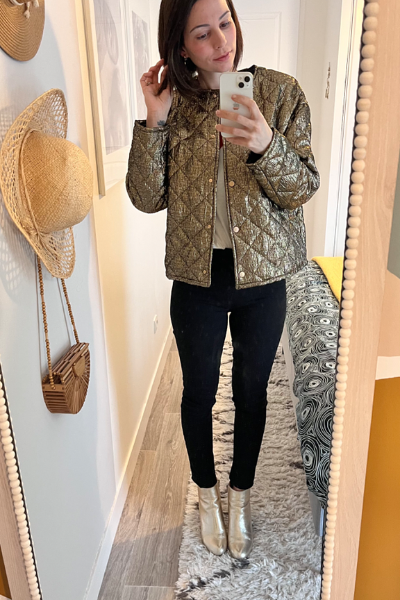 โข Veste doublรฉe et matelassรฉe โข Col rond โข Fermeture boutonnรฉe โข Poches sur la couture cรดtรฉ โข Longueur depuis l'รฉpaule 58 cm (pour un 36) Si vous hรฉsitez entre deux tailles, choisissez la taille en dessous. Sinon choisissez votre taille habituelle