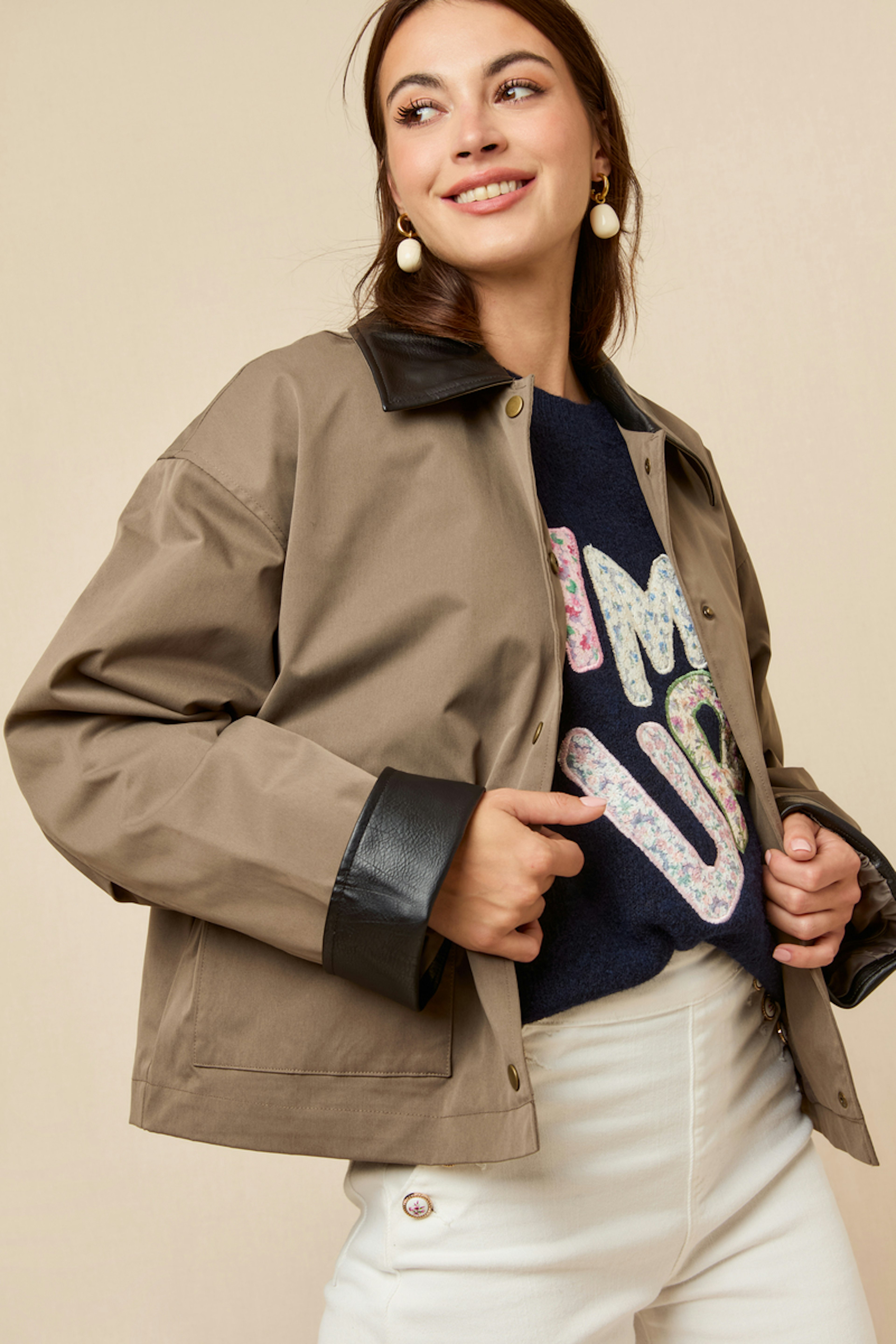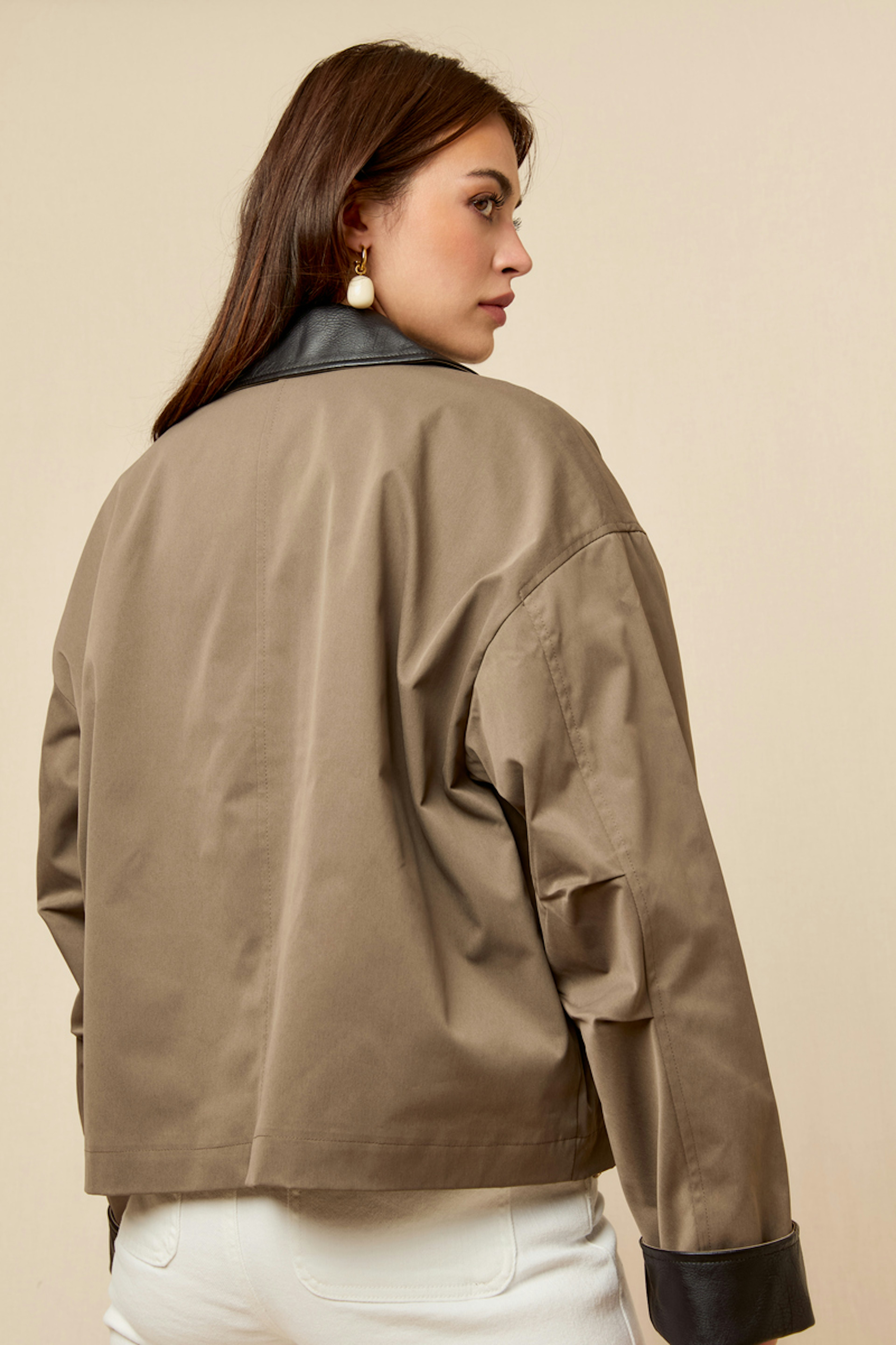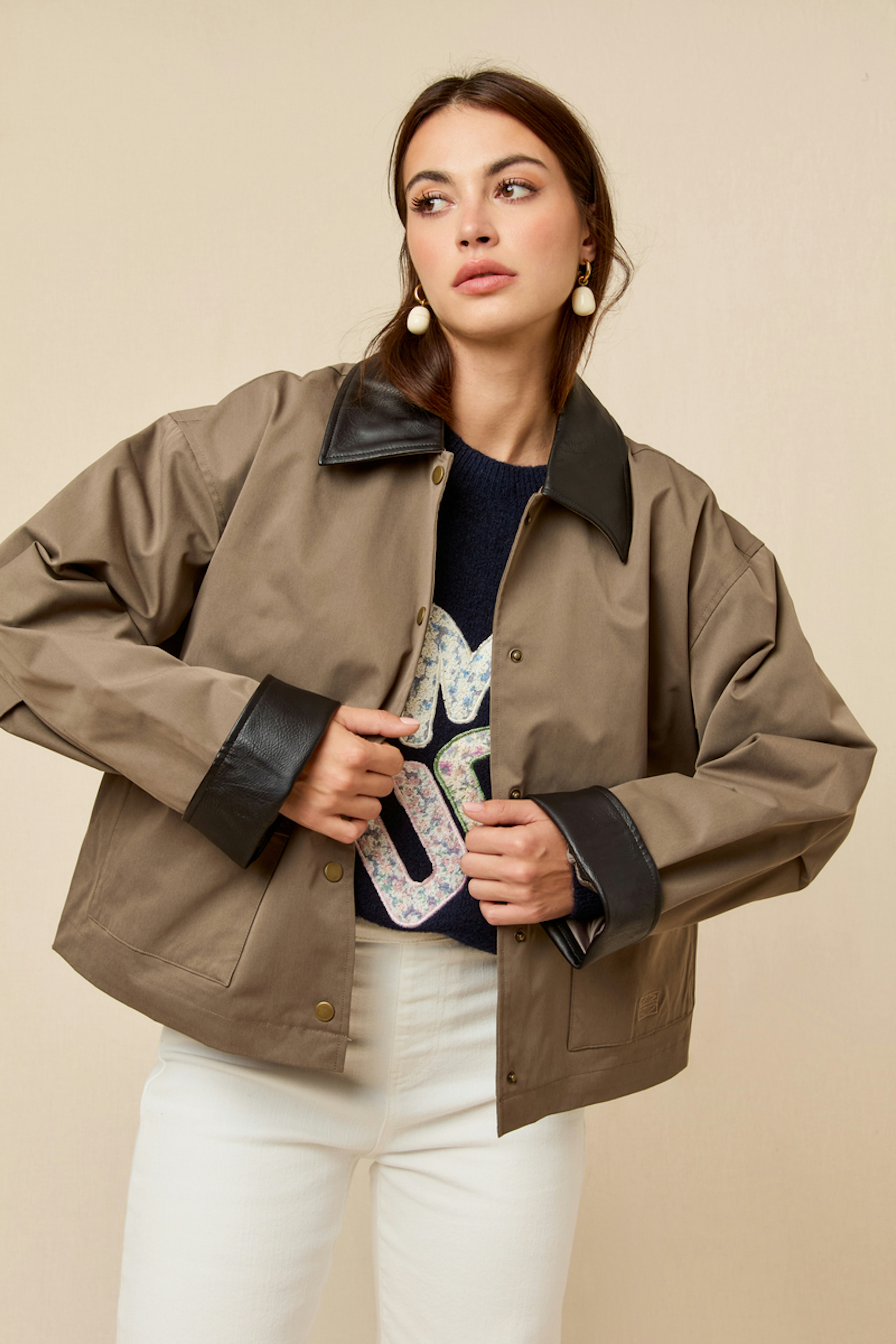 Associez cette veste avec un pull douillet et des bottines élégantes pour un look hivernal chic. • Veste en polyester • Coupe droite ample • Poches à rabat stylées • Fermeture à boutons-pression • Col et poignets contrastés