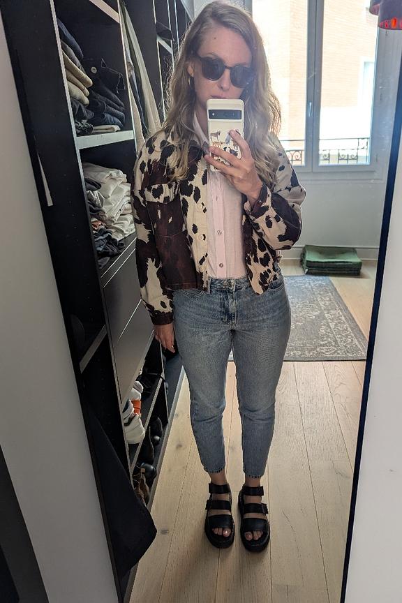“Vraiment pas comme je l’imaginais. Je pensais que le tissu serait épais, un peu comme du jean, plutôt type veste. Mais en réalité, c’est plus fin, comme une chemise je trouve que ça fait un peu cheap.”