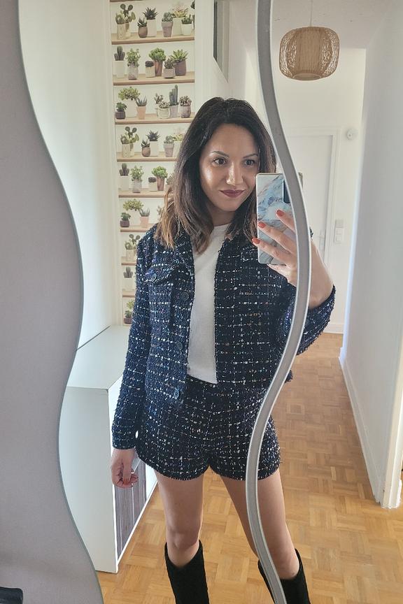 “J'adore cette veste style Chanel, à porter avec le short pour une soirée ou avec un jean pour la journée, elle est sublime 😍”