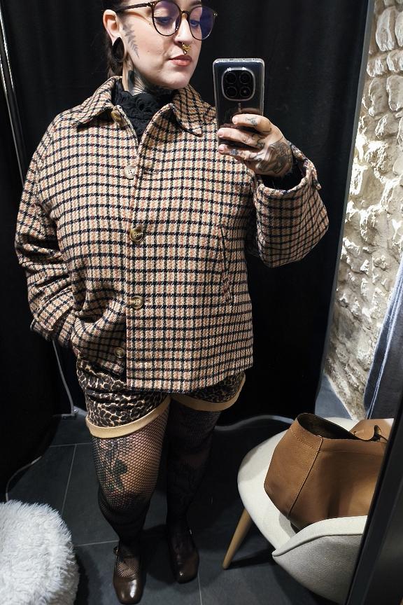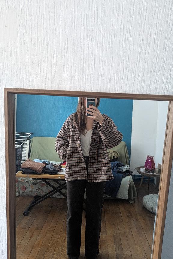“Joli, original, belle coupe loose mais du coup un peu grand …. Le coloris ne me mettait pas en valeur. Attention, un peu léger pour les grands froids !”