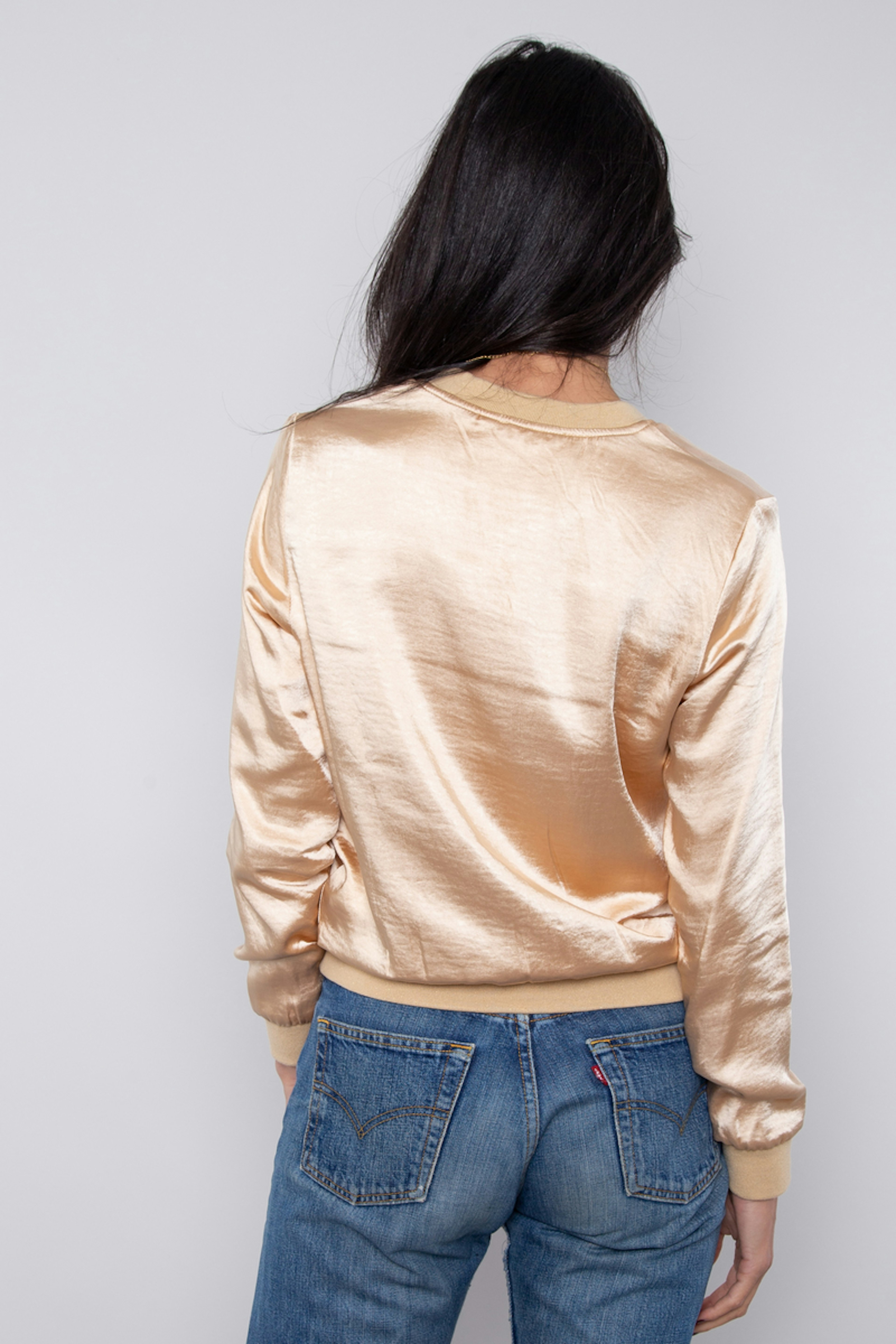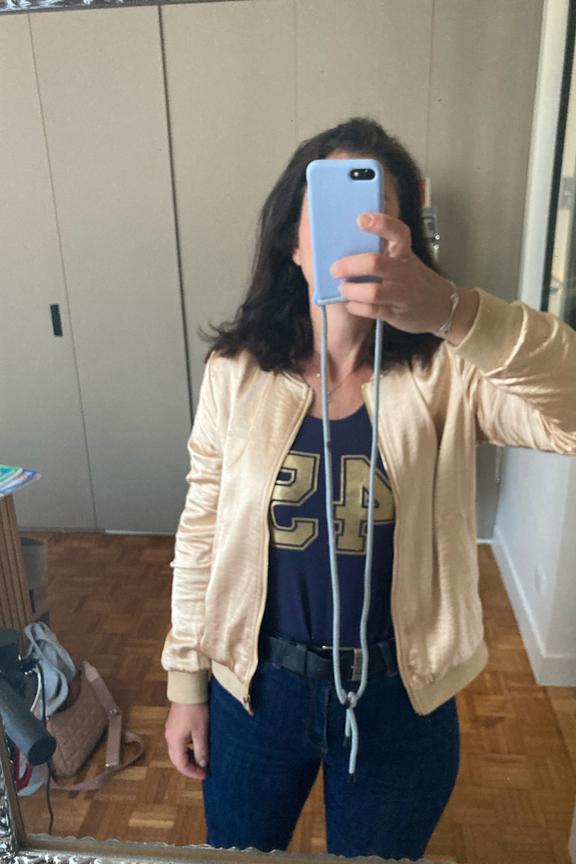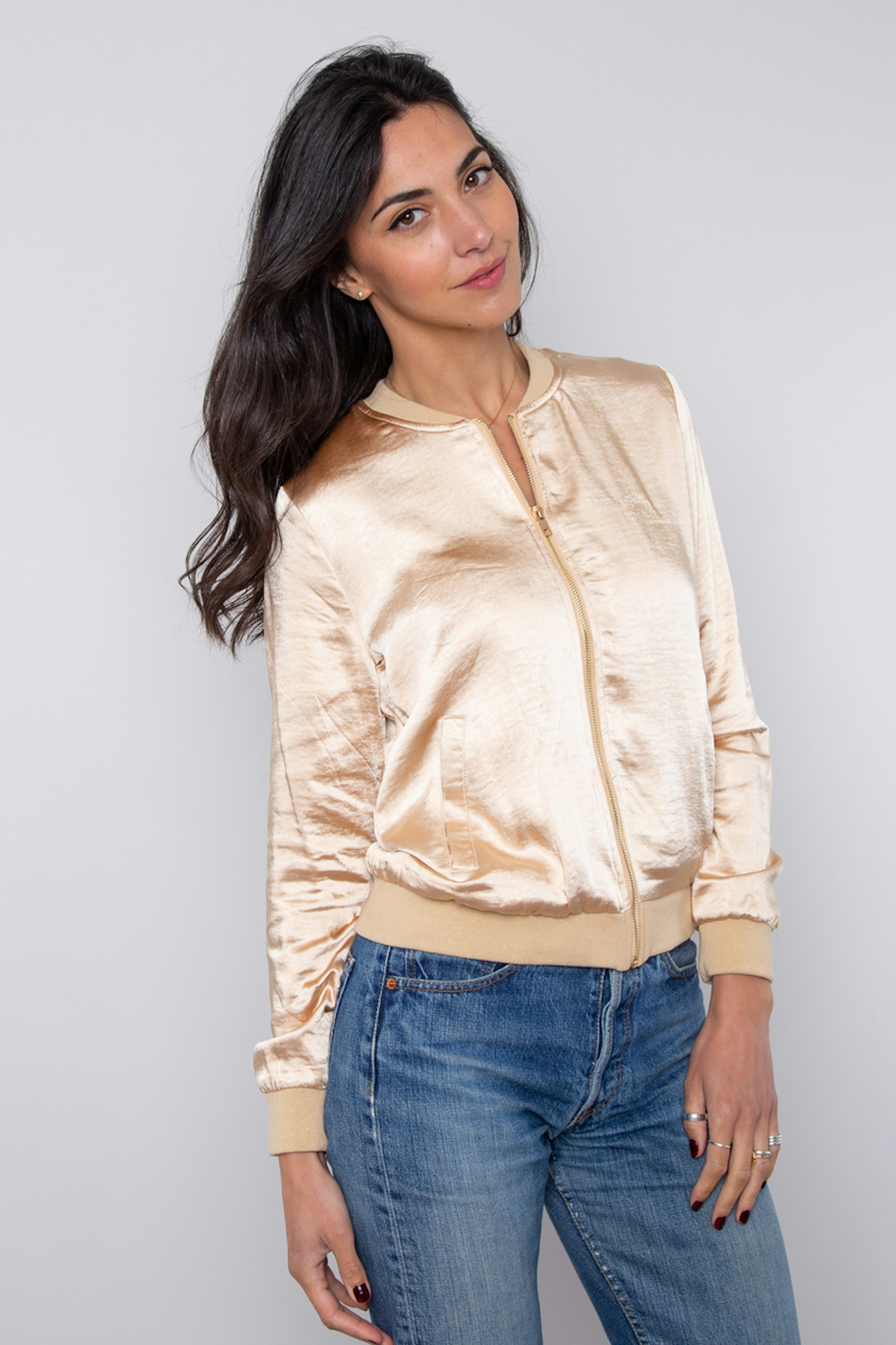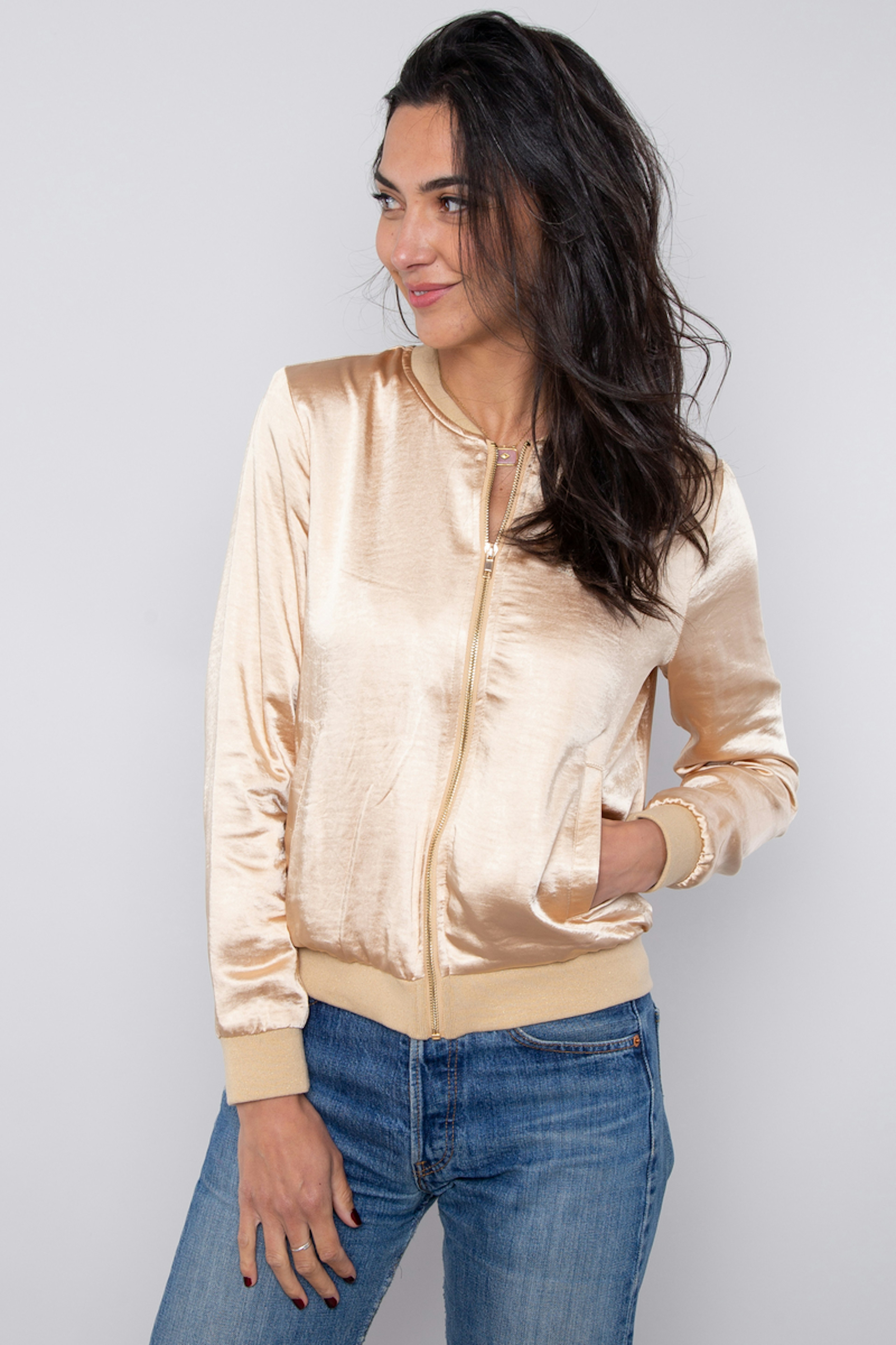 โข Veste style bombers โข Effet satinรฉ irisรฉ dorรฉ โข Fermeture zippรฉe sur le devant
