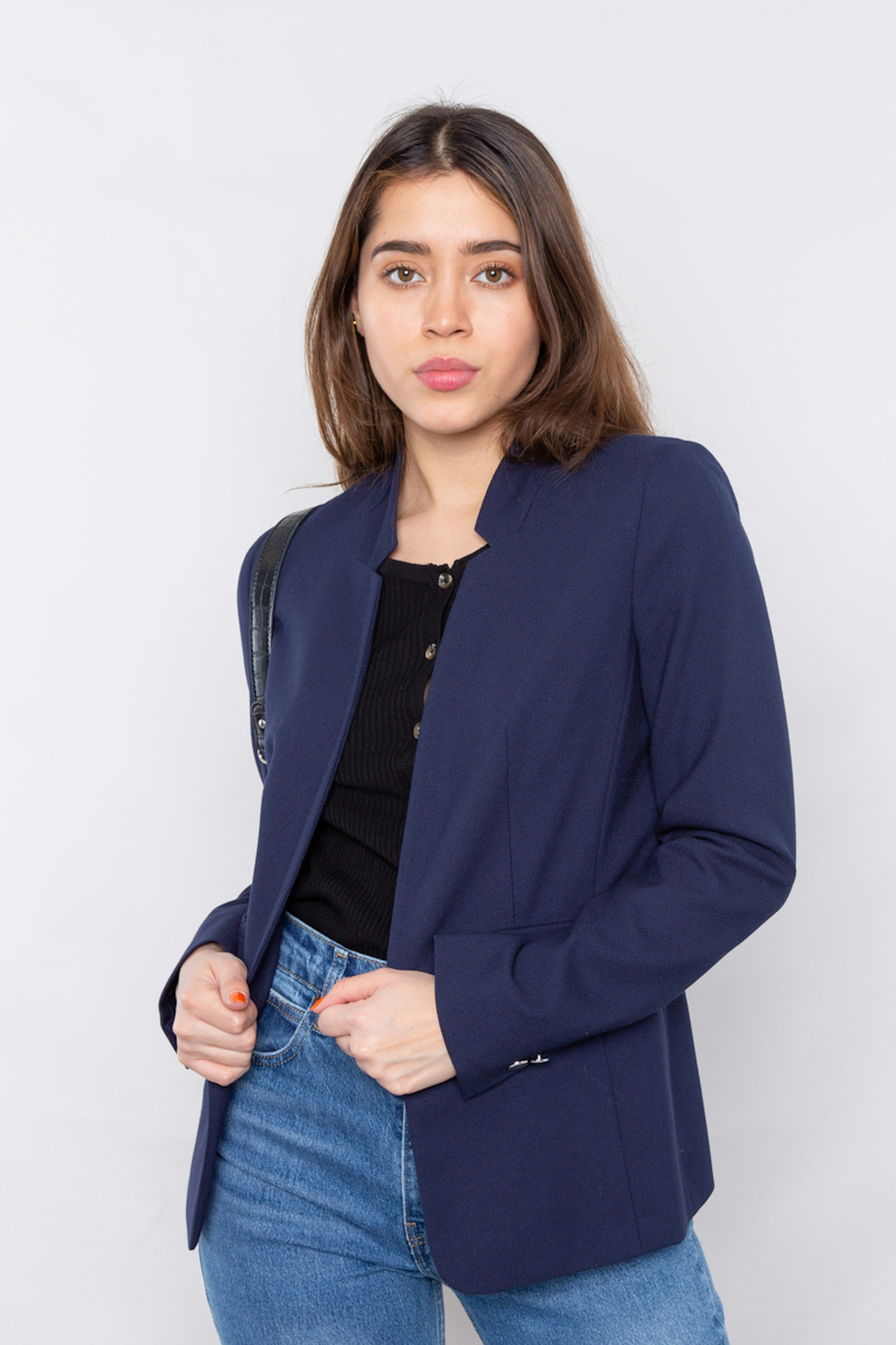Succombez ร l'allure ultra chic et moderne de la veste Precious. โข Veste de tailleur รฉlรฉgante marine โข Coupe ajustรฉe โข Col crantรฉ โข Maille piquรฉe โข Boutons chromรฉs poignets โข Deux poches passepoilรฉes โข Doublure : 100% acรฉtate