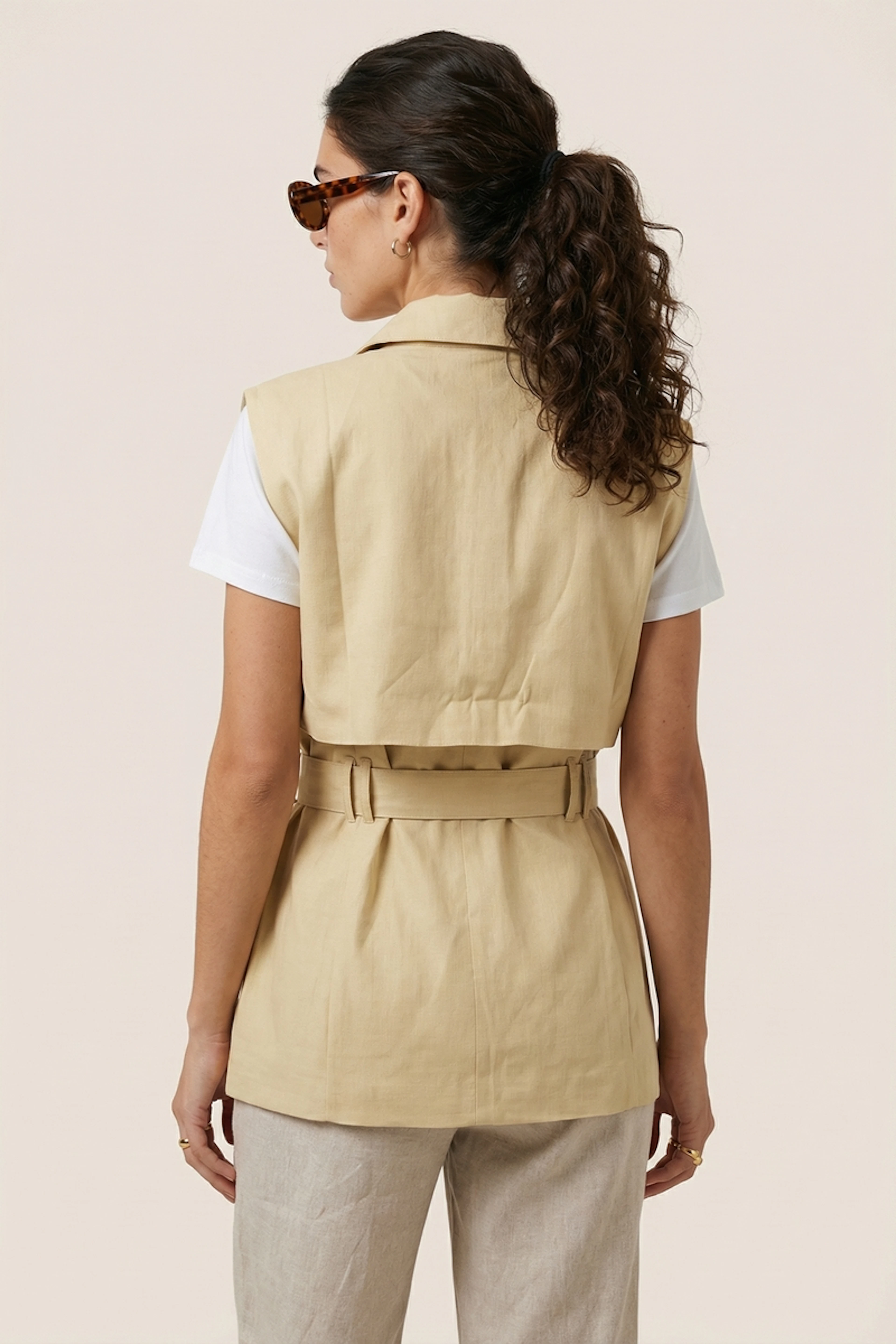 Associez cette veste avec un pantalon cargo pour un look casual chic. Parfaite pour un été léger et stylé. • Veste en coton • Coupe ajustée • Ceinture à la taille • Grandes poches à rabat • Col chemise
