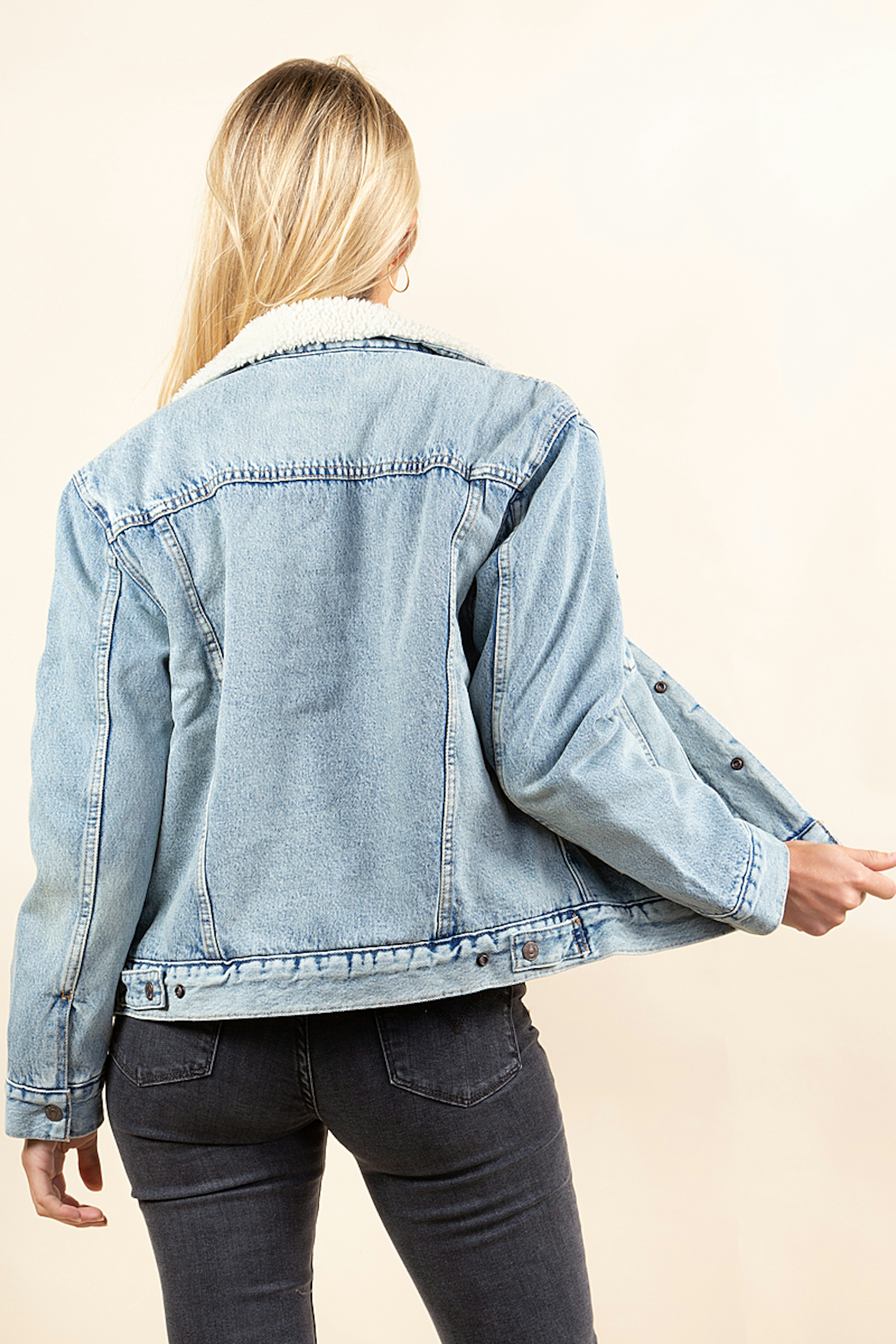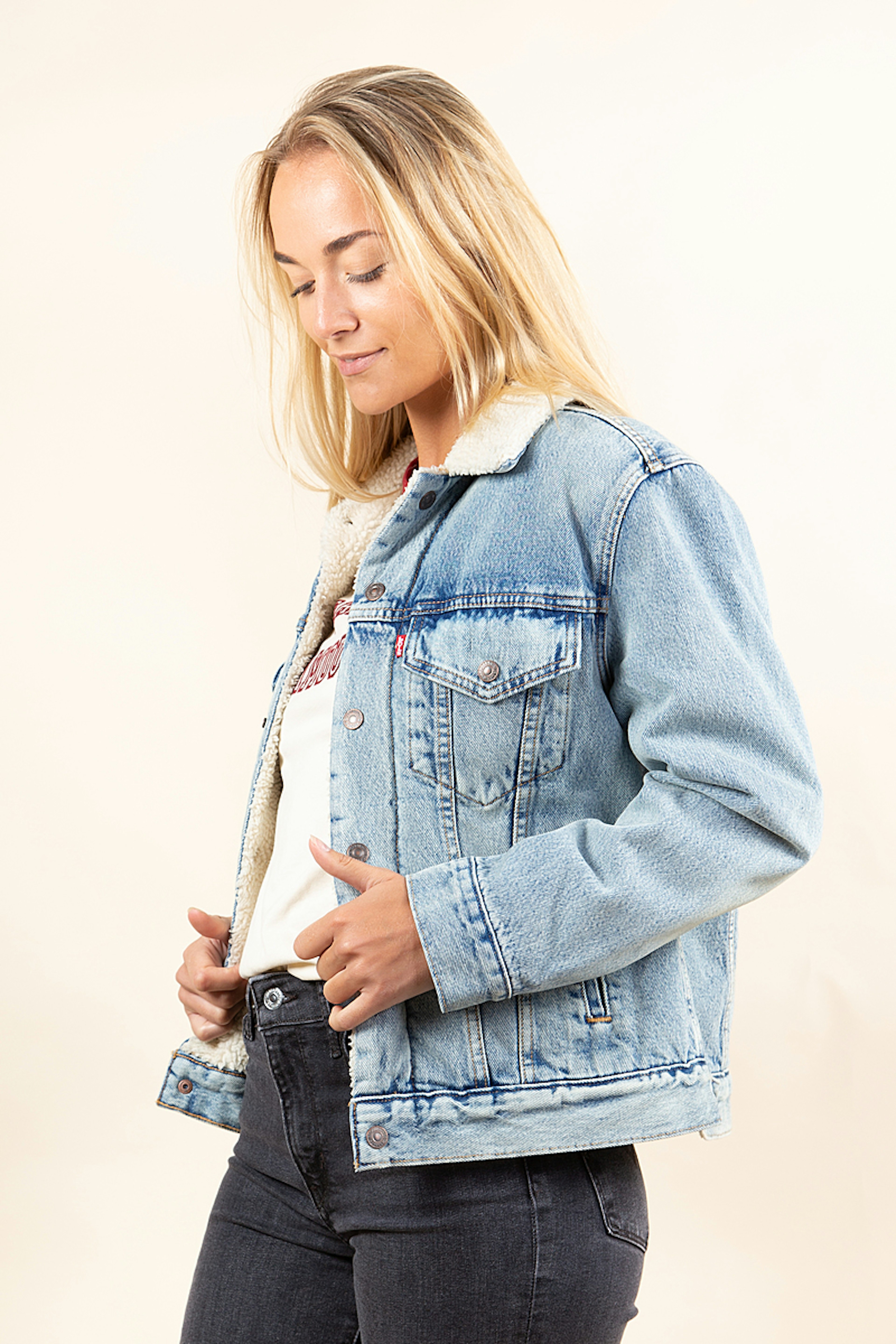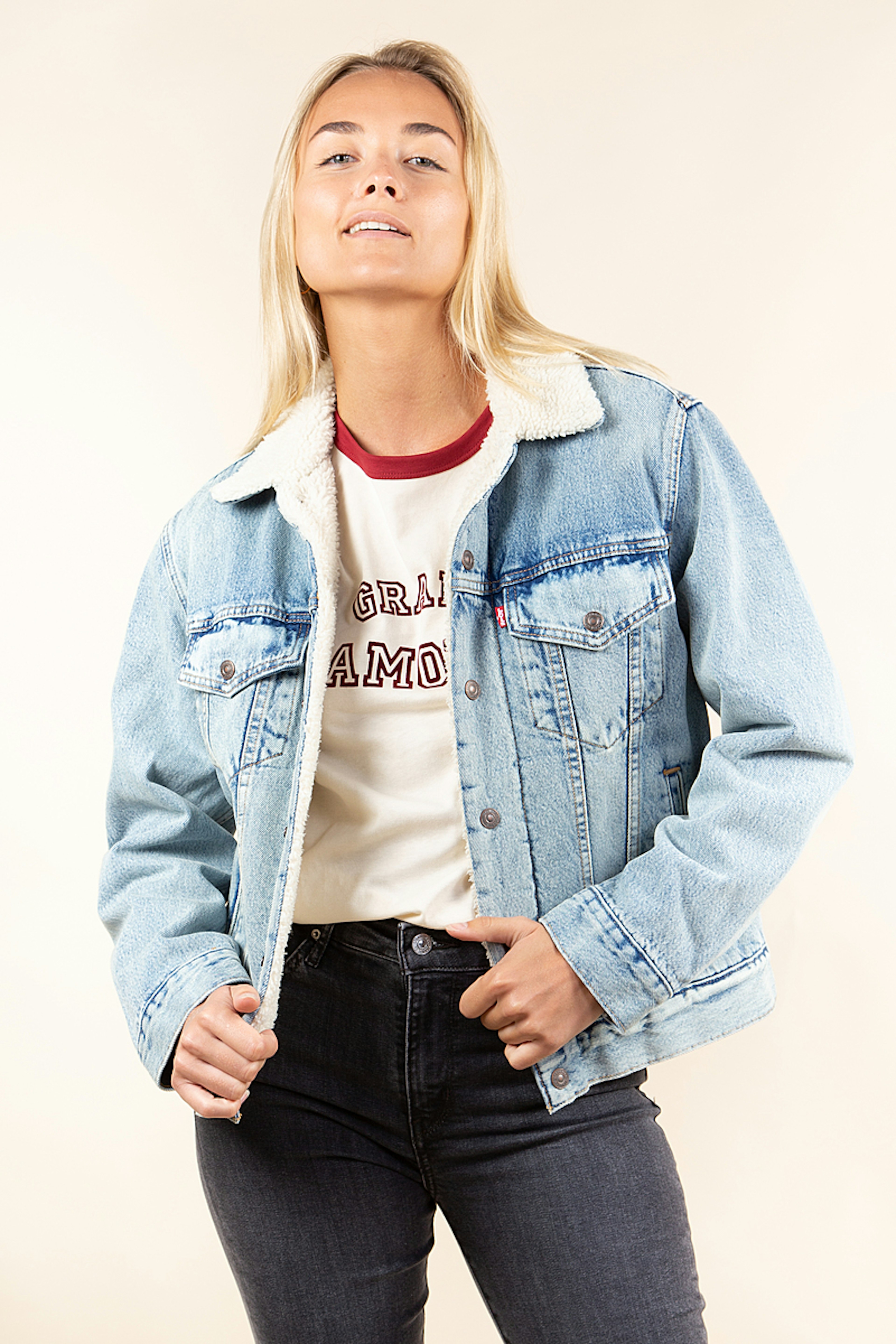 Quoi de plus indispensable l'hiver qu'une veste en Sherpa ? On vous a trouvรฉ ce modรจle de chez Levi's au dรฉlavage ultra tendance. โข Veste en jean avec sherpa โข Coupe oversize โข Doublure matelassรฉe dans les manches โข Conรงu en coton certifiรฉ BCI Pantalons en jean 501ยฎ, languette rouge tissรฉe, surpiqรปres contrastรฉes... Vous l'avez devinรฉ il s'agit bien de la marque amรฉricaine Levi'sยฎ : leurs crรฉations iconiques sont devenues des incontournables. Leur savoir-faire qui date du XIXรจme siรจcle et leur capacitรฉ d'innovation sont leur vรฉritable force.