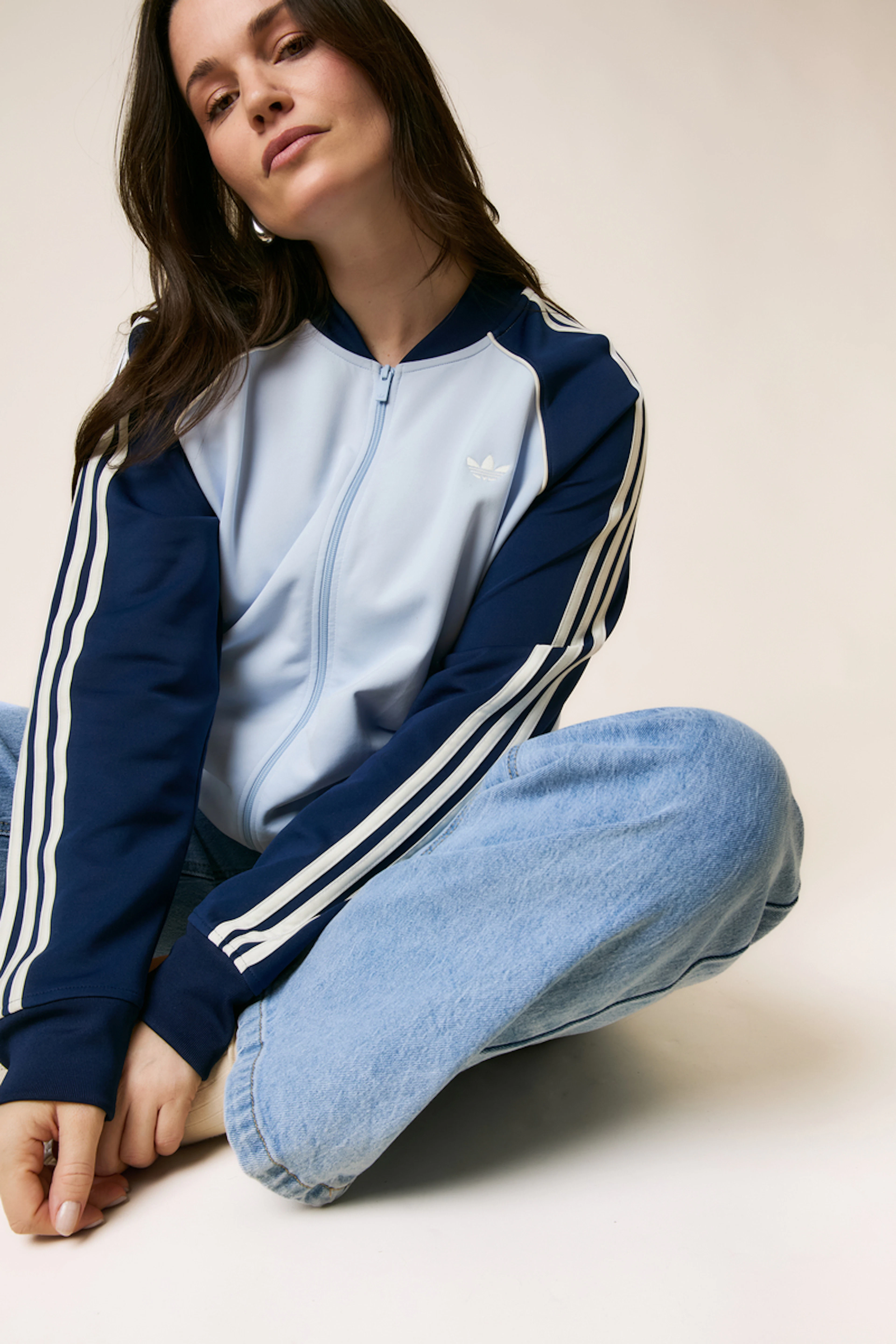 Pour un look décontracté et sportif, associez cette veste avec un jean taille haute et des baskets blanches. Parfaite pour les fraîches journées d'hiver. • Veste à manches longues • Coupe raglan confortable • Fermeture éclair sur le devant • Bordures contrastantes • Motif à rayures iconiques