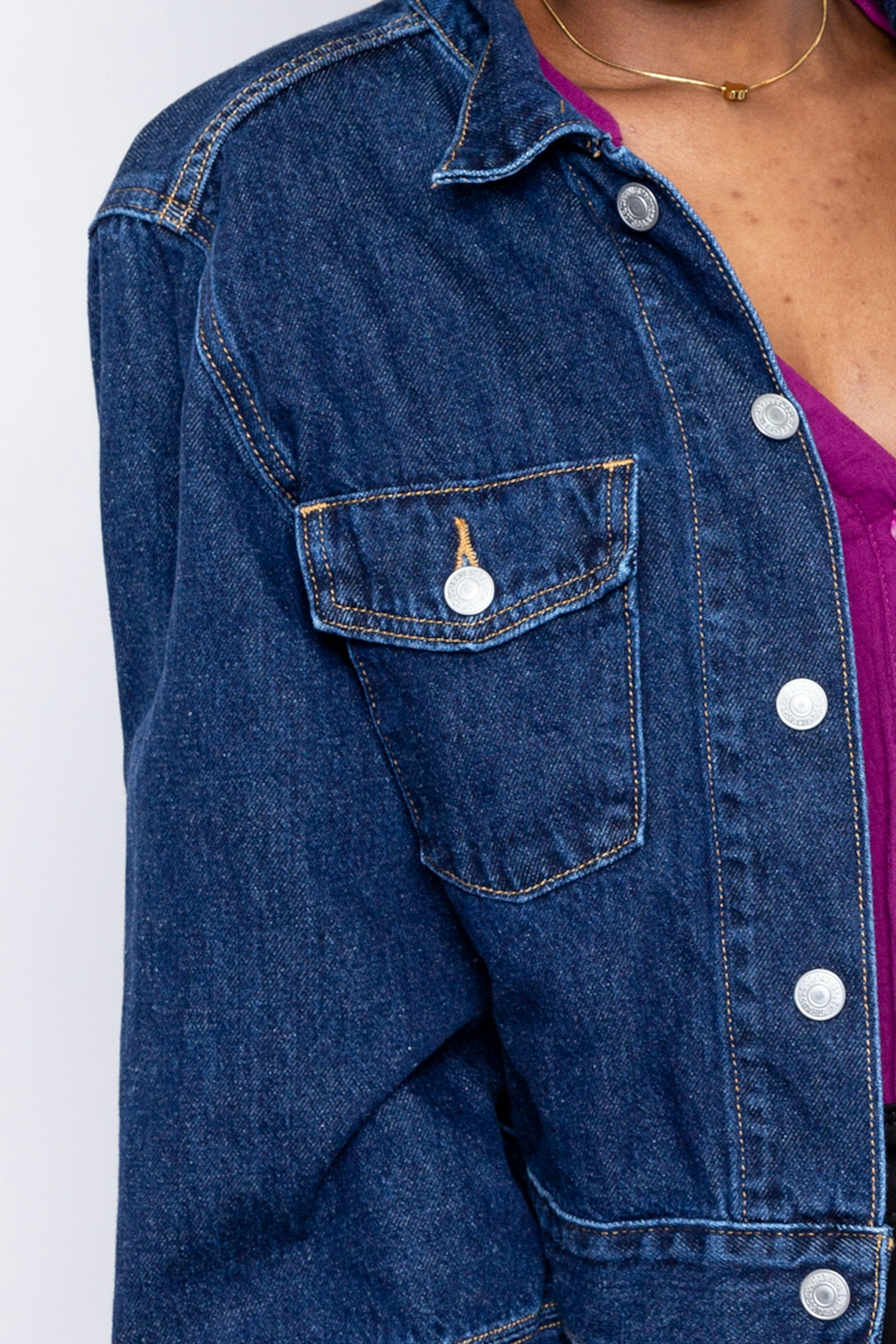 Optez pour cette veste Trucker repensรฉe pour apporter du style ร vos tenues du quotidien. โข Veste en jean Trucker ร la coupe tendance โข 2 poches boutonnรฉes sur la poitrine โข Se ferme ร l'aide de boutons โข Manches ballon resserrรฉes aux poignets โข Toile composรฉe de coton et de chanvre