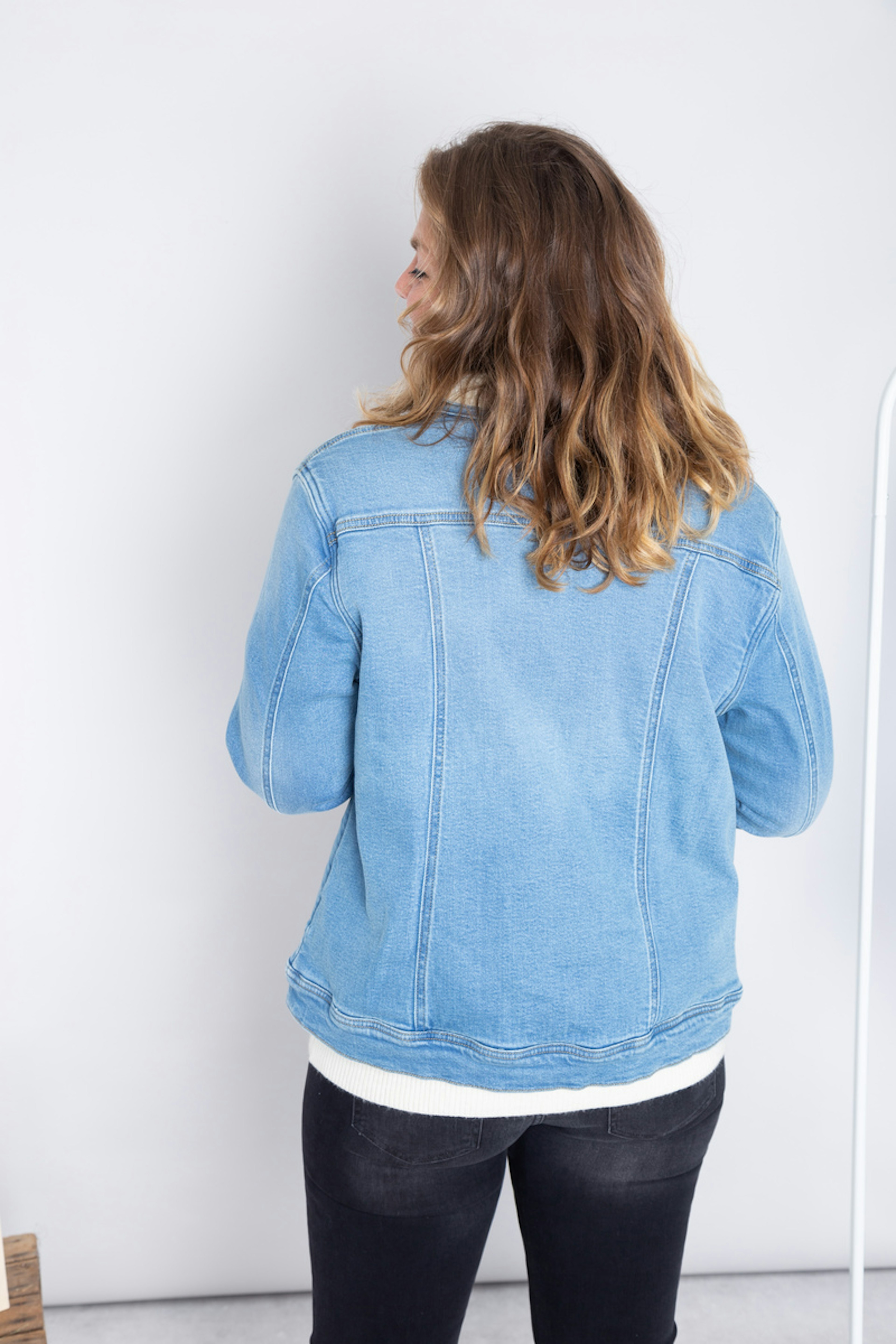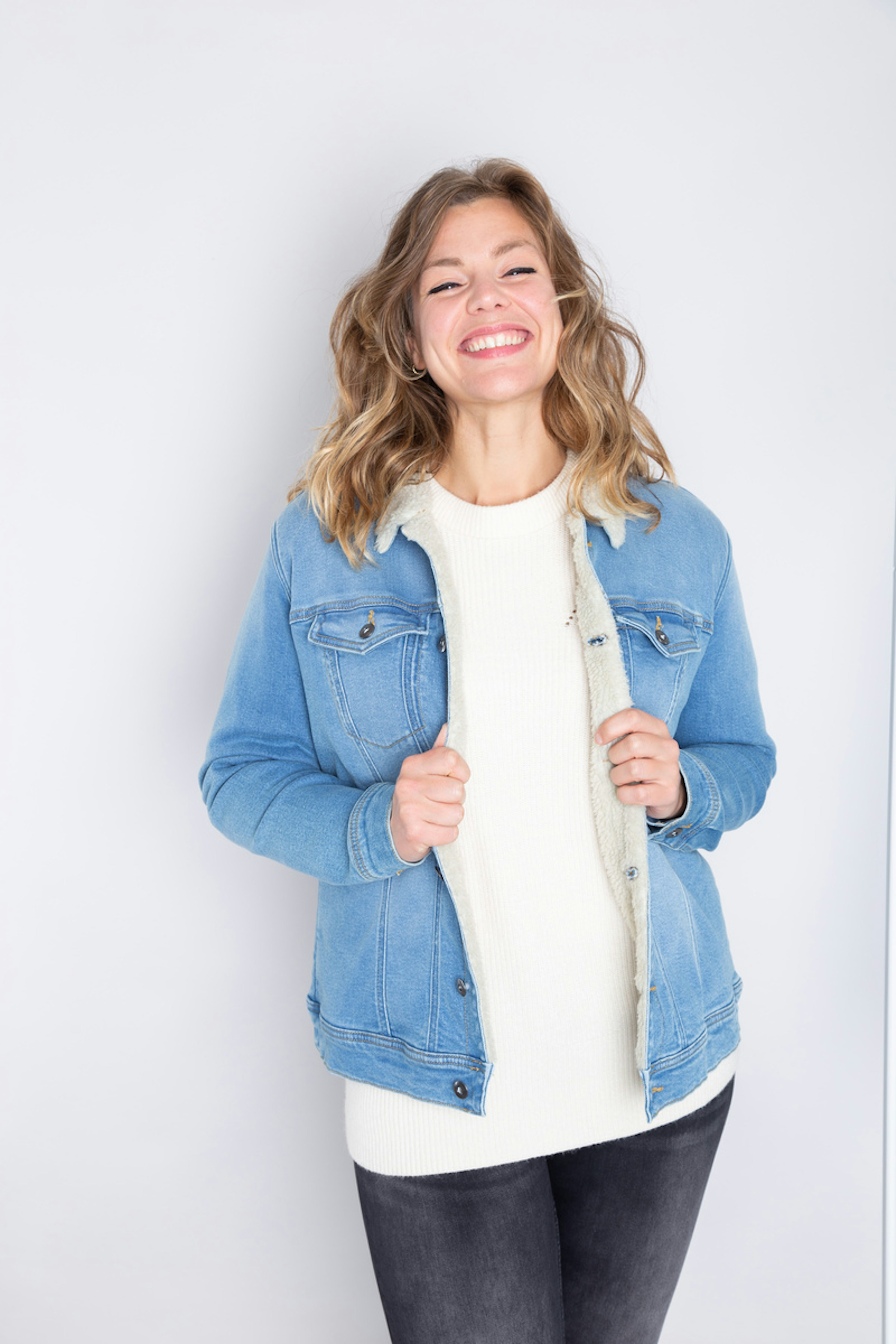 โข Veste en jean โข Doublure en sherpa โข Poche ร rabat sur la devanture de la veste โข Fermeture boutonnรฉe