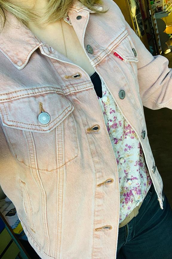 Faites souffler un vent de fraรฎcheur printanier avec cette veste Trucker Levi's rose pastel, idรฉale sur une robe lรฉgรจre ou un jean brut! โ€ข Veste trucker rose en denim de coton โ€ข Coupe ajustรฉe slim โ€ข Boutons-pression argentรฉs โ€ข Poches intรฉrieures profondes