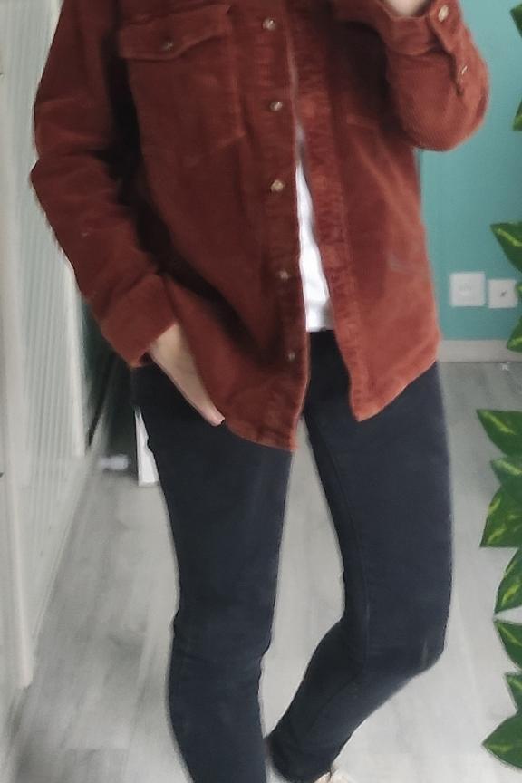 โข Veste worker style sur-chemise โข Coloris brique โข Col classique โข Matiรจre en velours cรดtelรฉ โข Patte de boutonnage sur l'avant โข Deux poches plaquรฉes ร rabat sur la poitrine โข A porter en ensemble avec son "pantalon Jules" ou en simple sur-chemise
