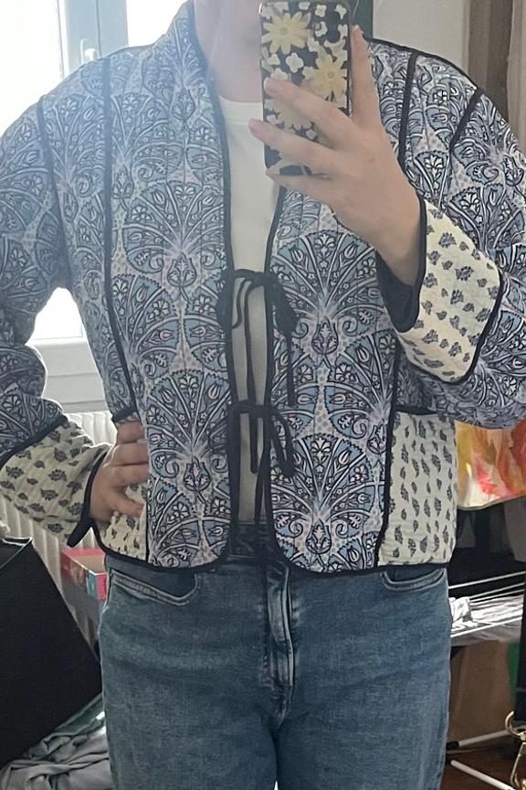 Ajoutez une touche bohème à votre tenue en associant cette veste à un jean slim et des bottines en cuir pour une allure décontractée chic. • Veste en viscose • Coupe courte • Manches longues • Fermeture à nouer • Motif imprimé