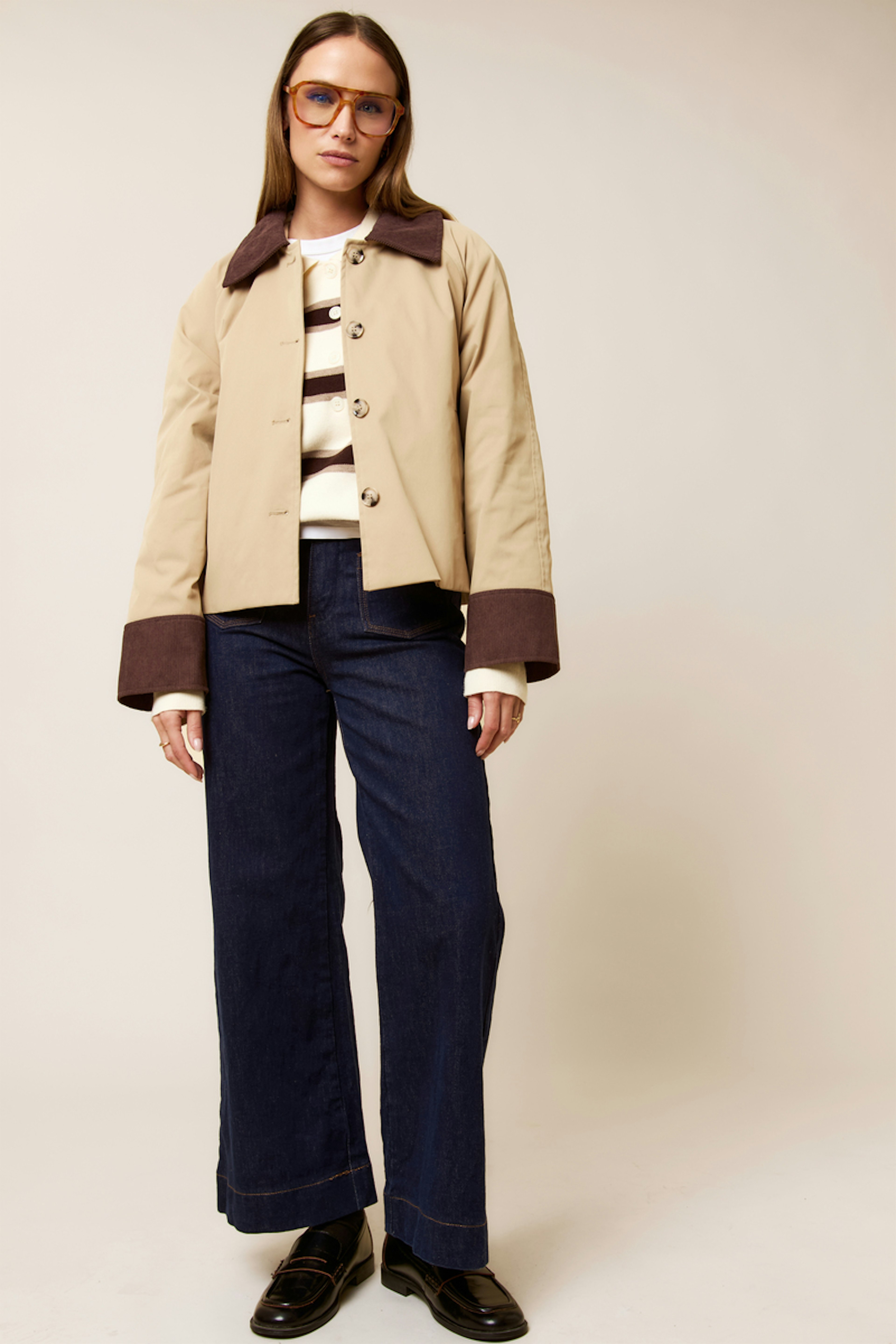 Portez cette veste avec un jean taille haute et des bottes pour une allure chic et décontractée. • Veste courte • Col classique • Manches longues • Boutons en contraste • Poignets larges