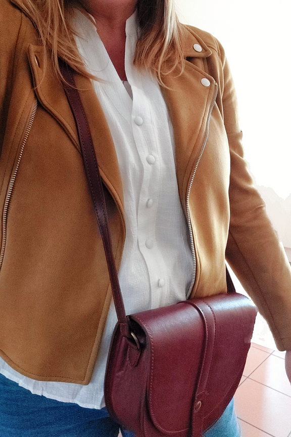Pour un style chic et dรฉcontractรฉ, associez cette veste marron ร un jean slim et un chemisier lรฉger. Ajoutez une paire de bottines pour un look parfait en toute saison. โข Veste courte en simili daim โข Coupe ajustรฉe โข Col ร revers avec boutons-pression โข Fermeture รฉclair asymรฉtrique โข Poches zippรฉes sur les cรดtรฉs