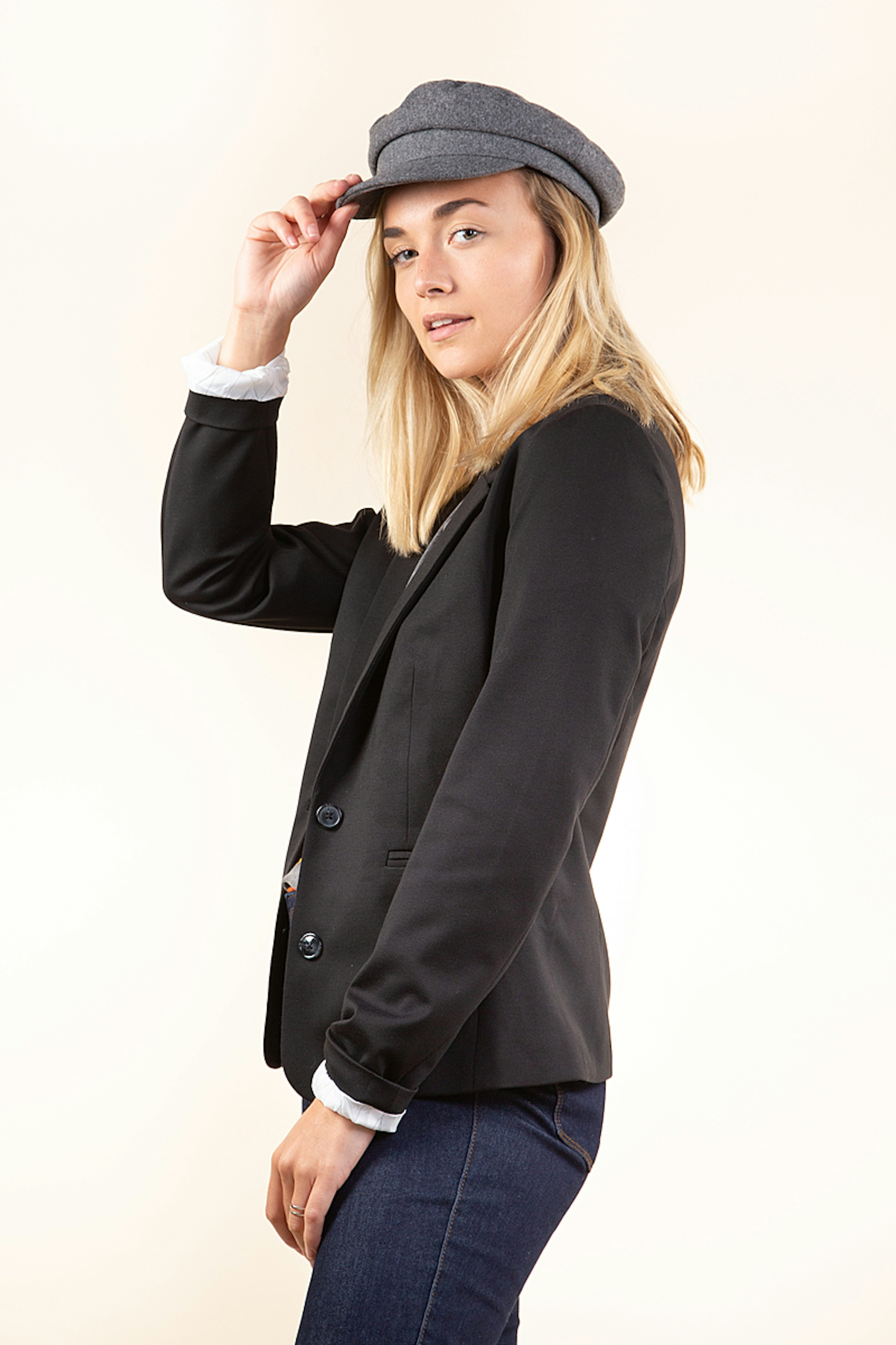 โข Veste blazer noire โข Fermeture via deux boutons sur le devant โข Coupe cintrรฉe โข Col v ร revers โข Doublure blanche ร l'intรฉrieur