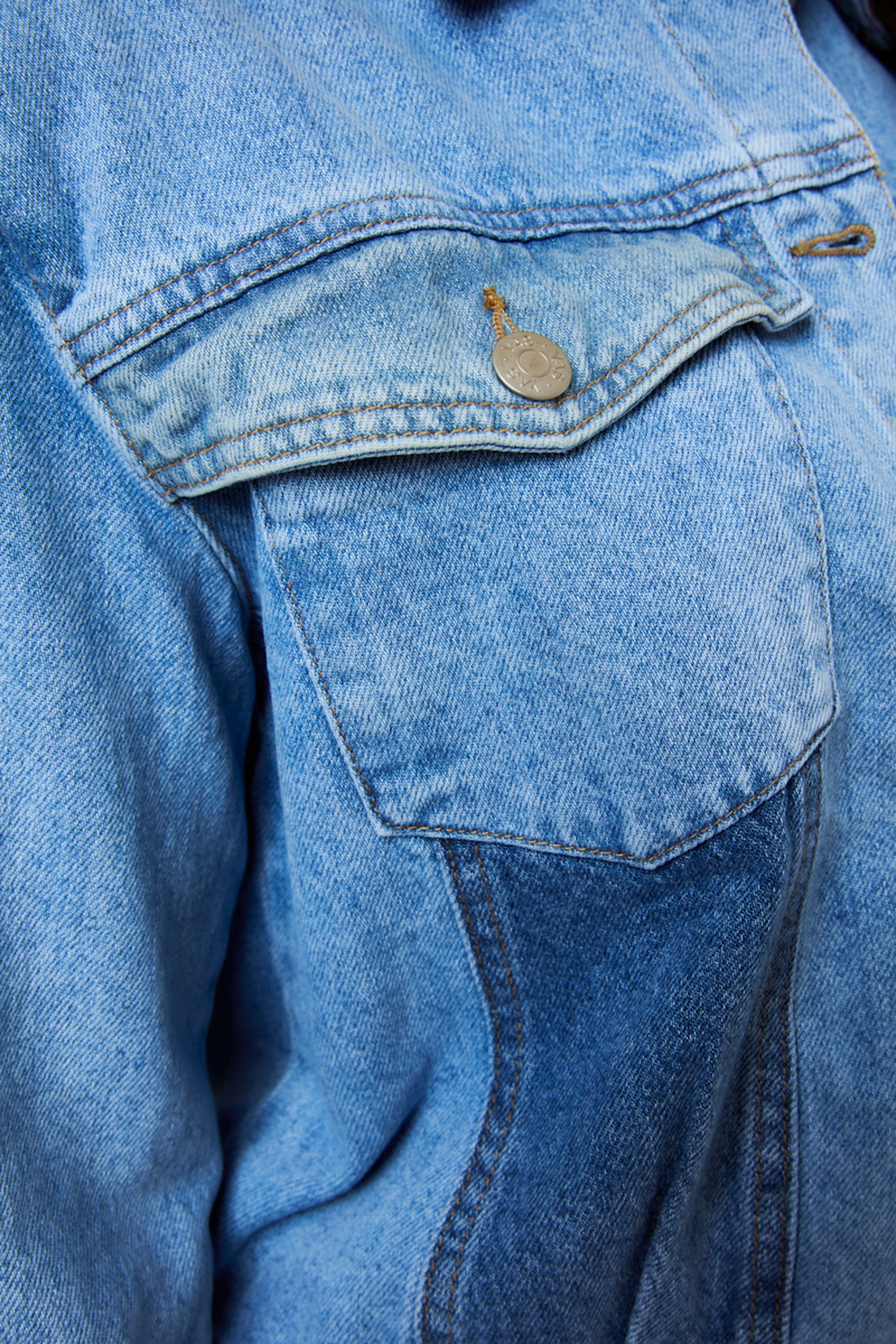 Ajoutez une touche de décontraction à votre look avec cette veste en denim, parfaite avec un pantalon taille haute et un t-shirt minimaliste pour les soirées d'été. • Veste en denim • Coupe droite • Manches longues • Col chemise • Détails contrastés
